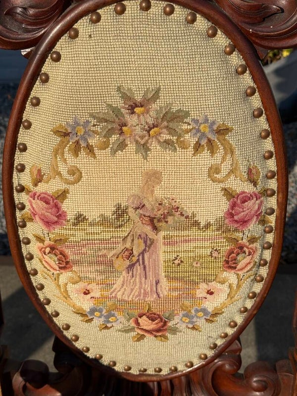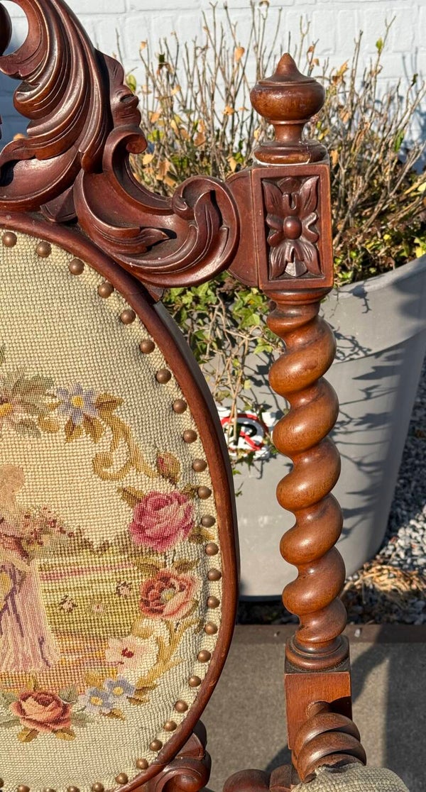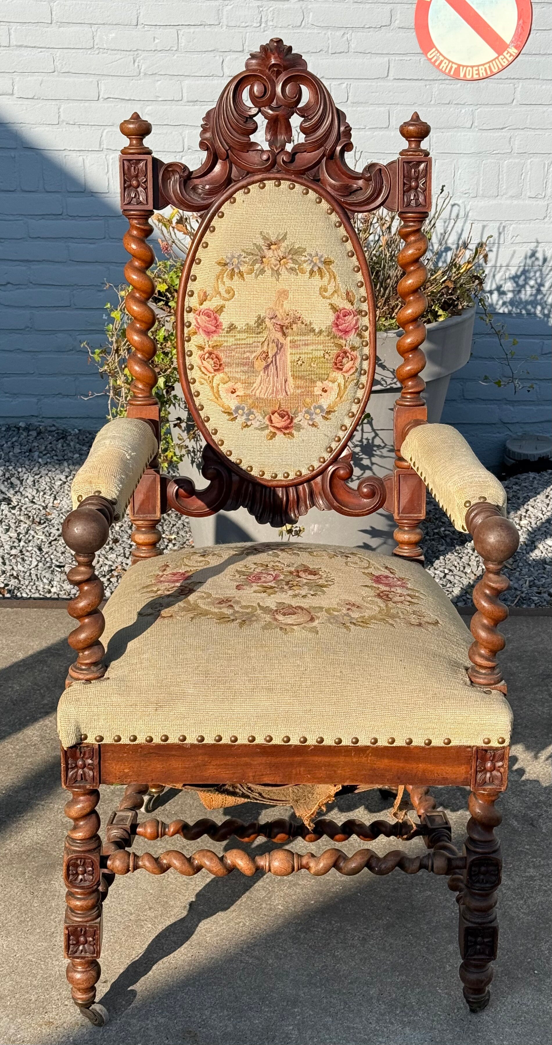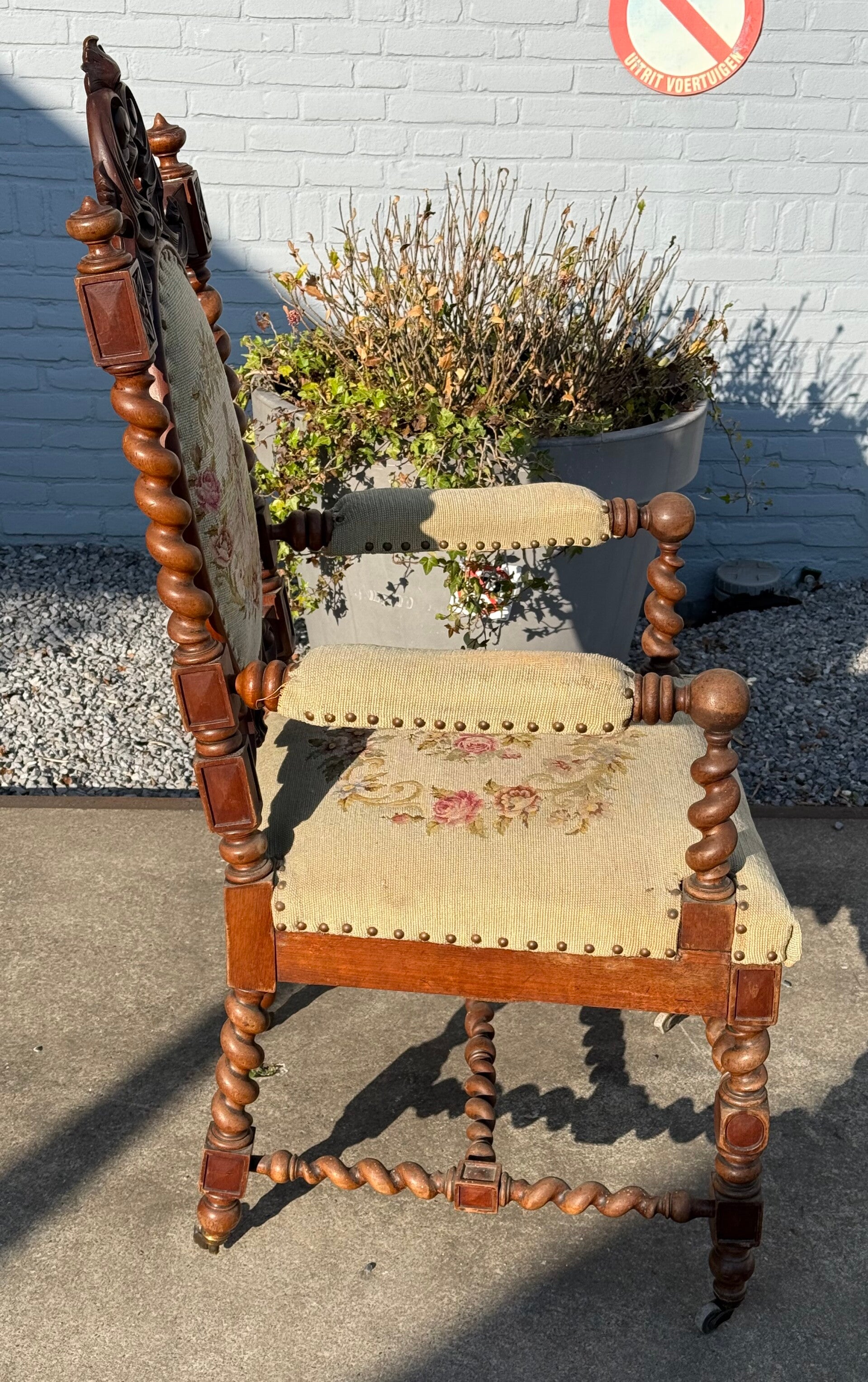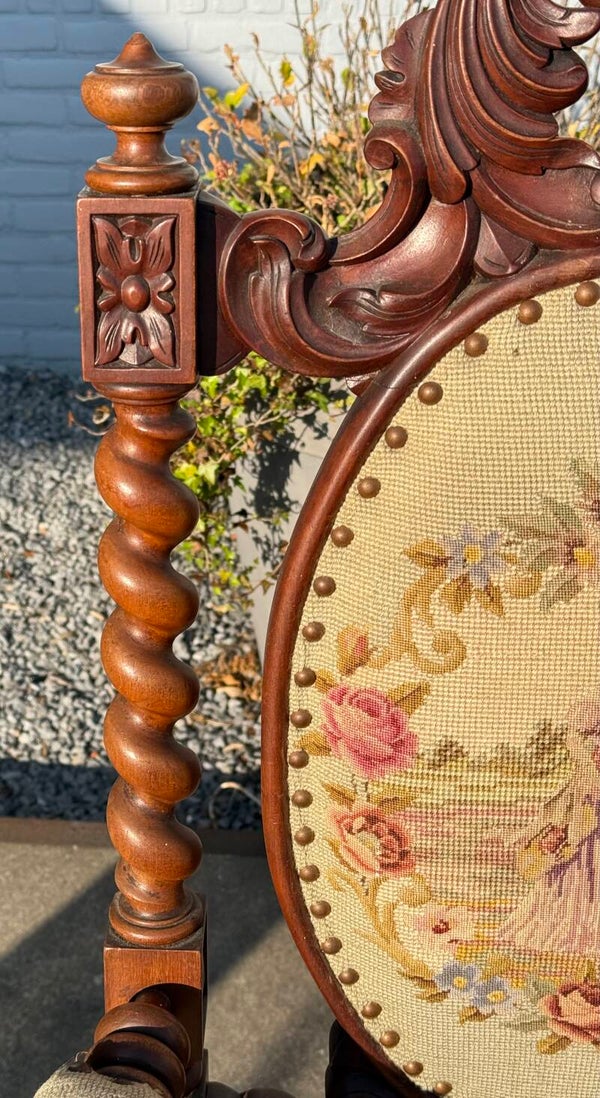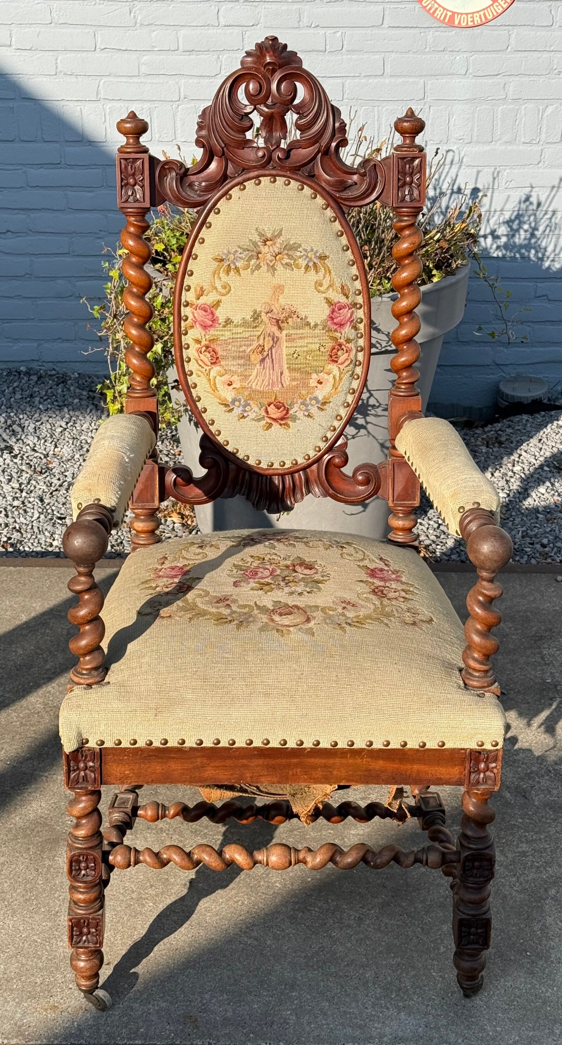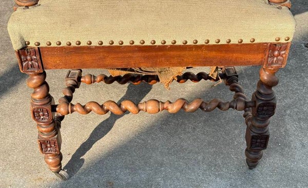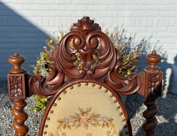 Early 19th Century French Oak renaissance beautifully carved chair with stunning new upholstery. In good original condition with new upholstery.