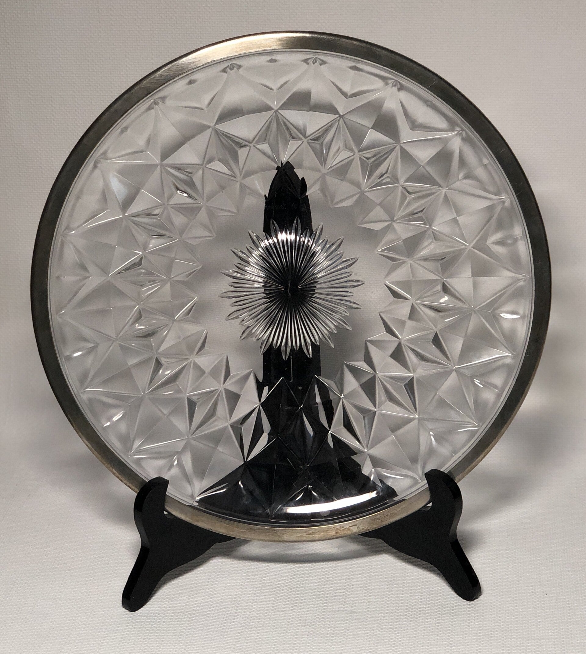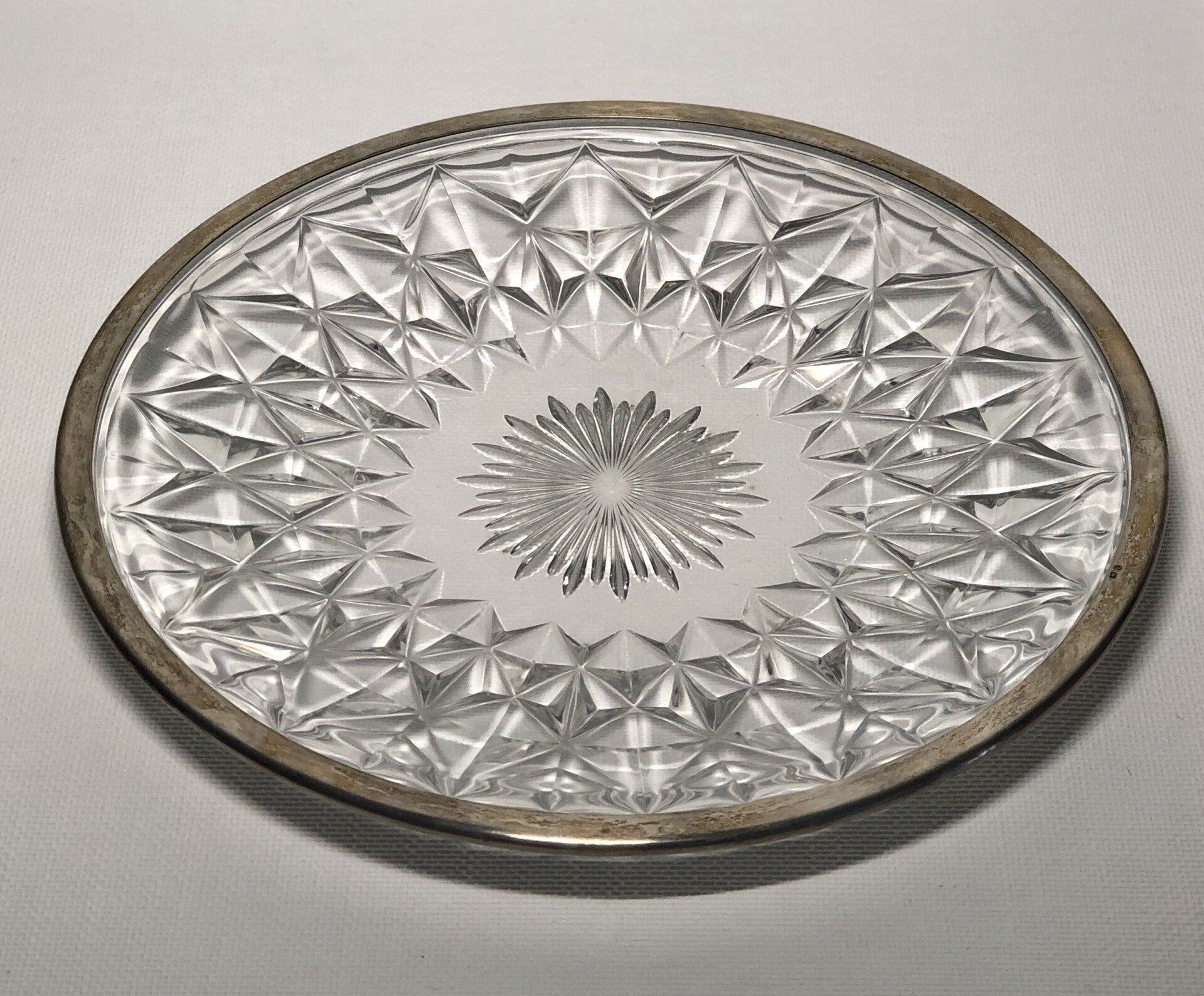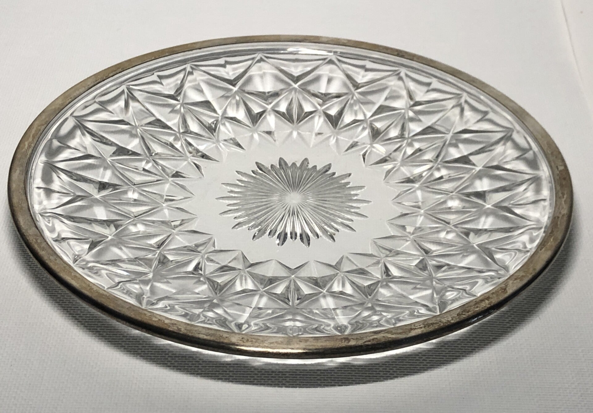 NR44. Kristallen Val saint Lambert schaal met zilveren rand.