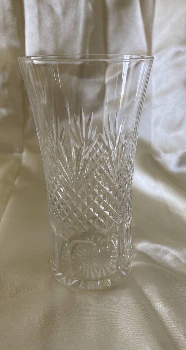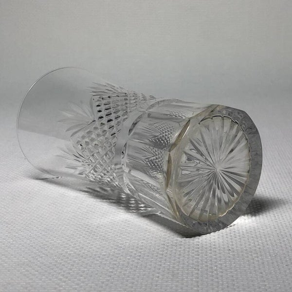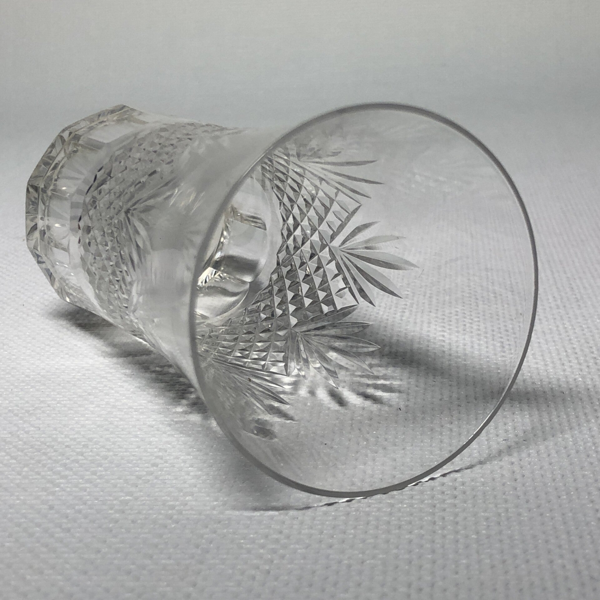 NR40. Ruit en waaier geslepen kristallen bloemenvaasje.