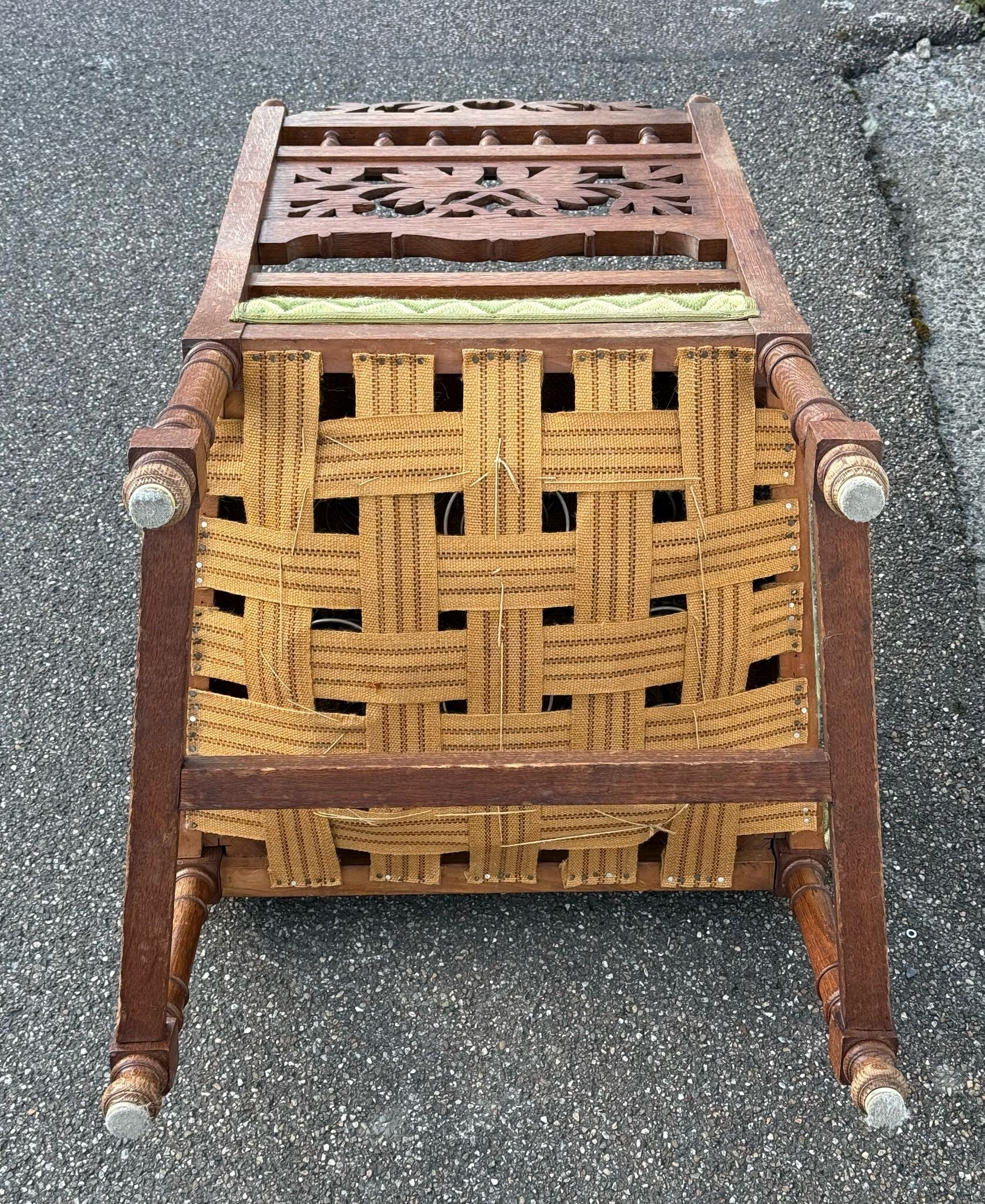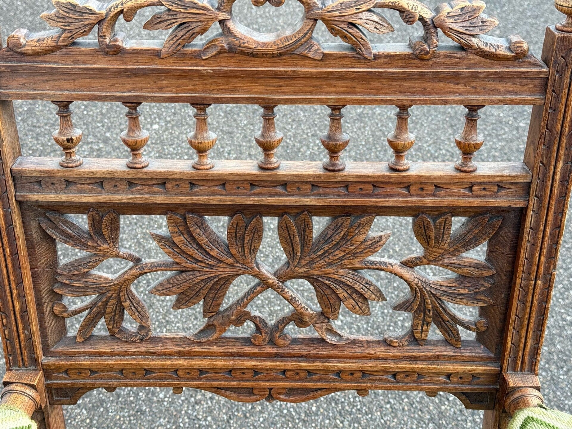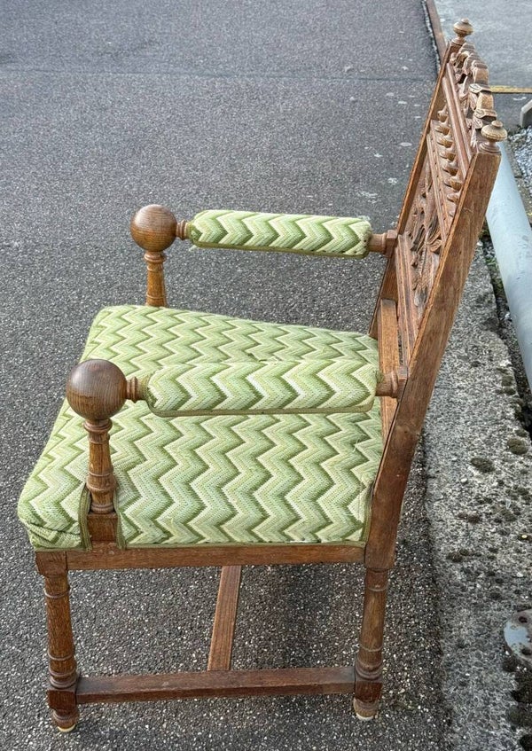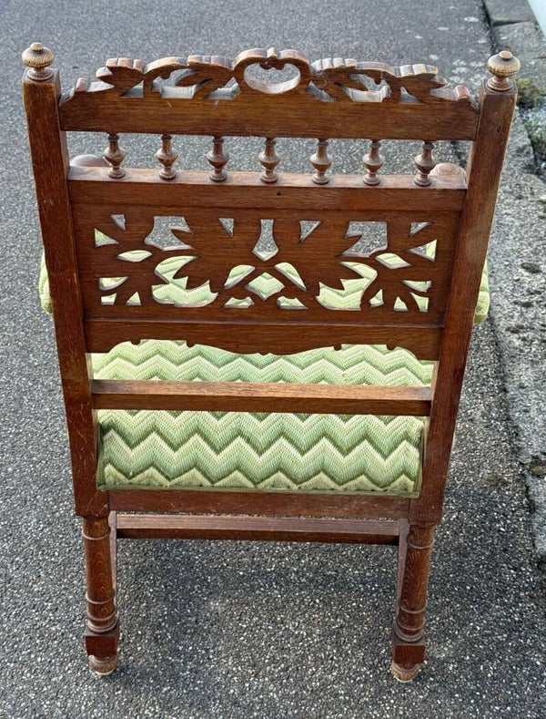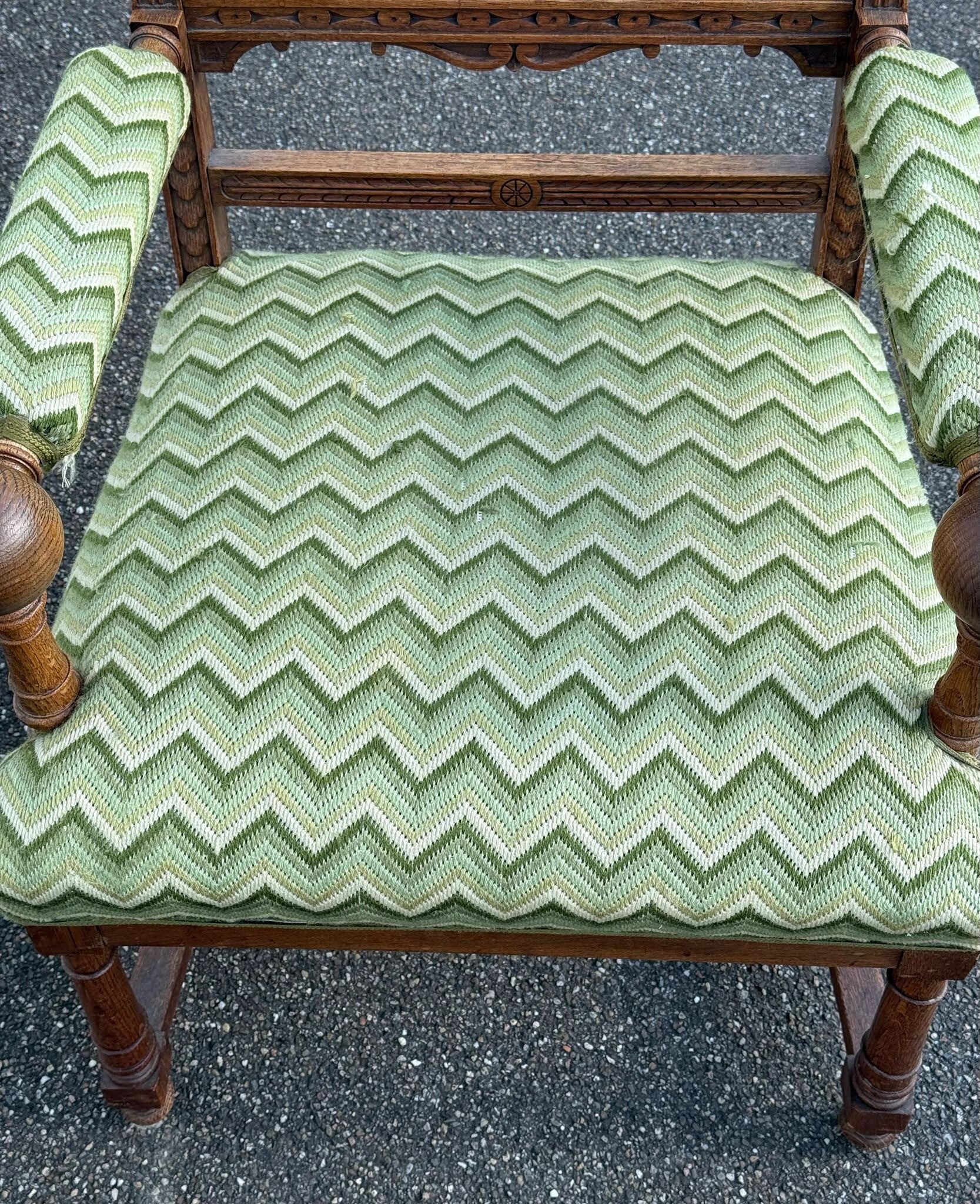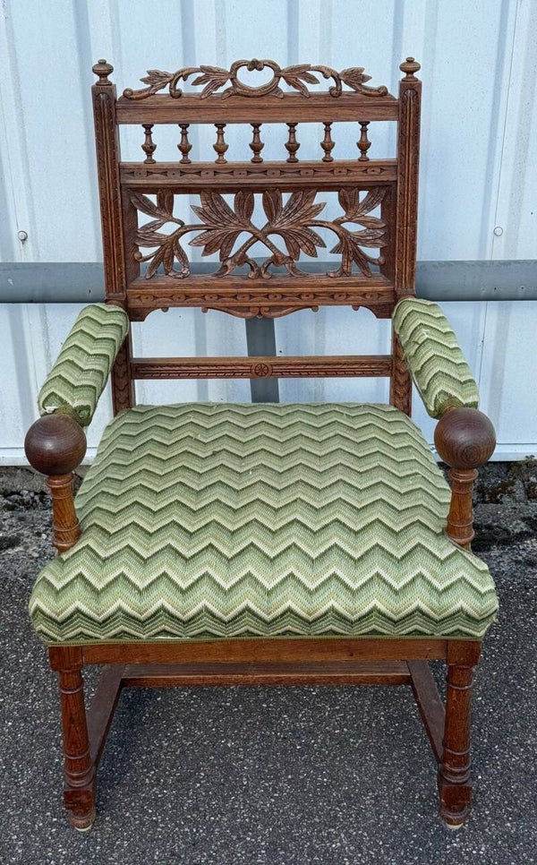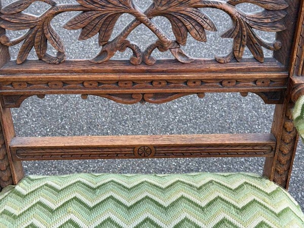 Antique Dutch Armchair. Wood with green upholstery. Beautiful leaf design. 1900s