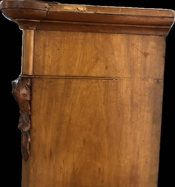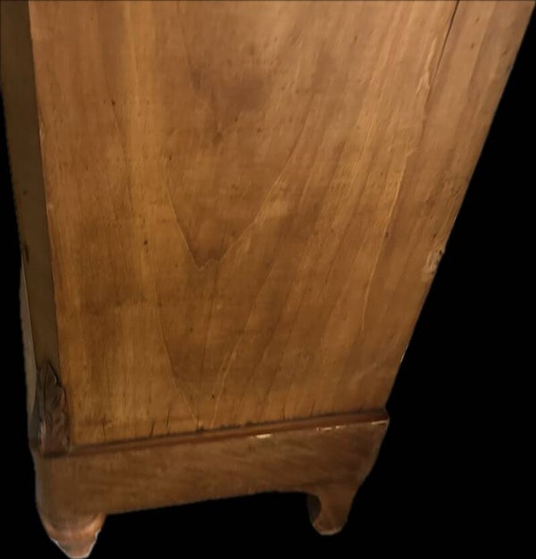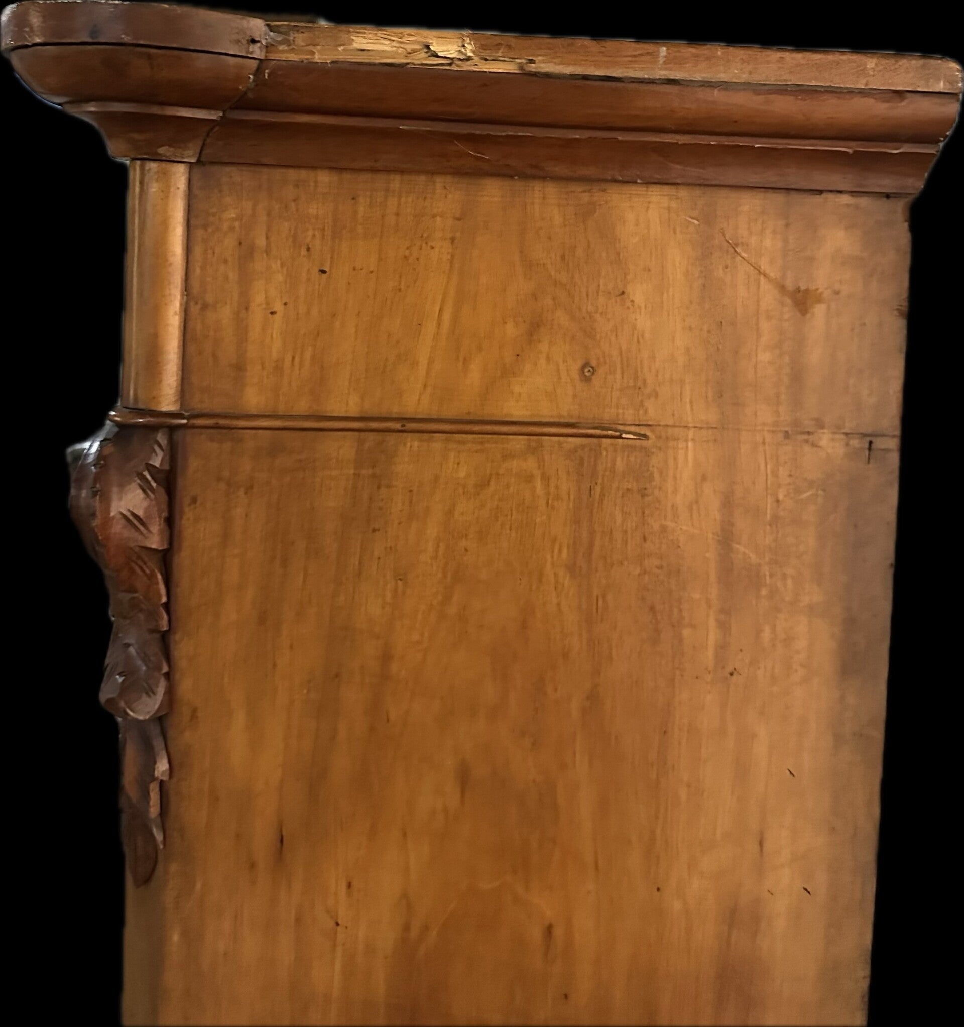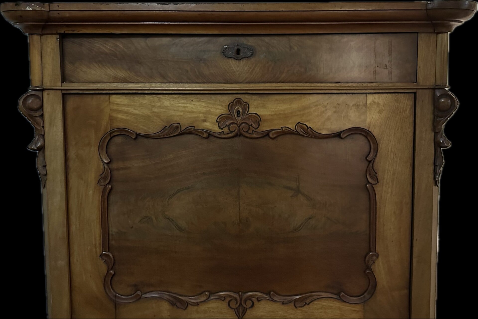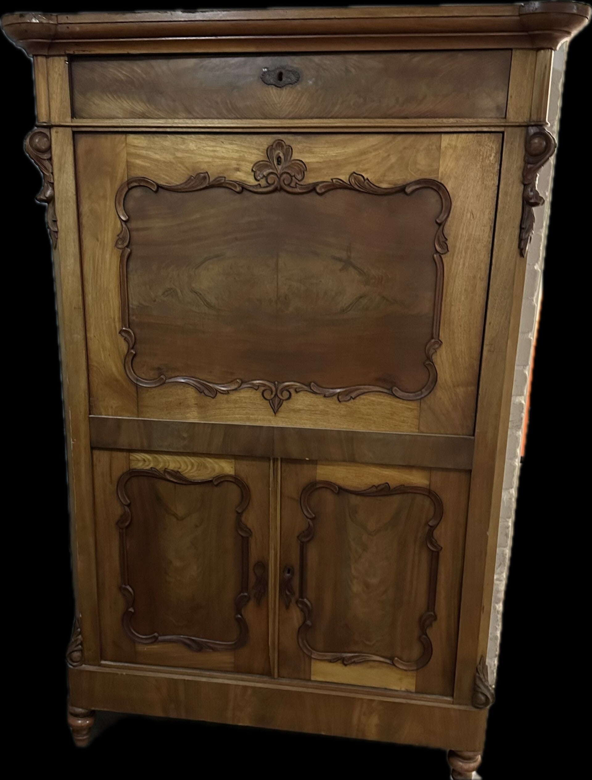 19th century Dutch mahogany Biedermeier Secretaire a abattant, secretary desk, writing table. Various compartments and drawers behind the flap. Shelves behind the doors. Inlaid with green felt. from about 1880.