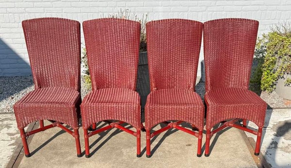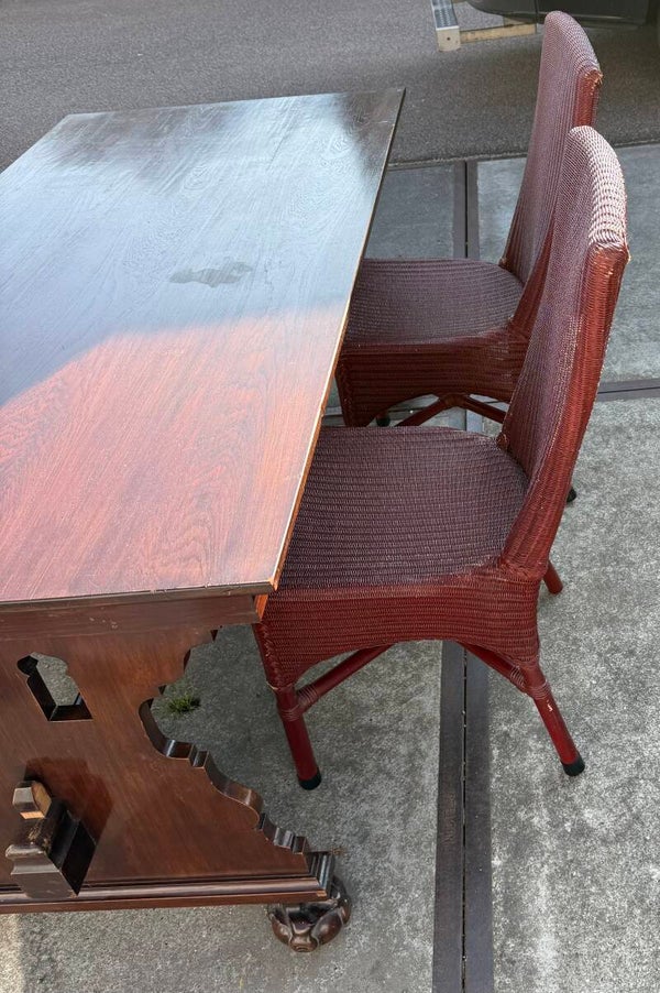 Set of 4 English Bordeaux Wicker garden dining chairs and vintage table