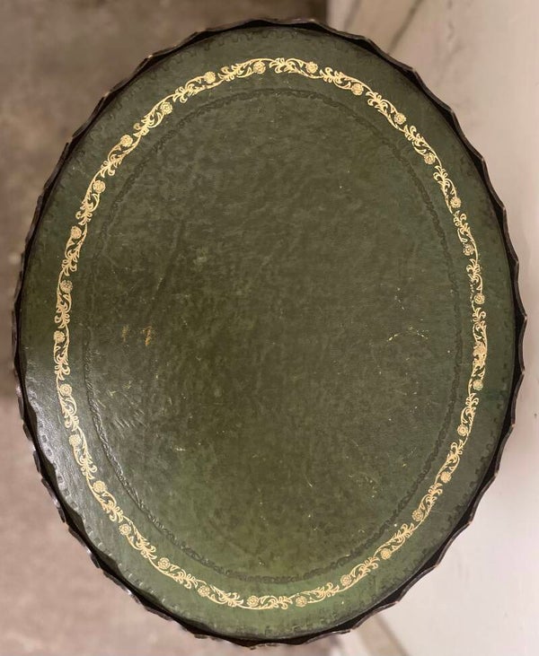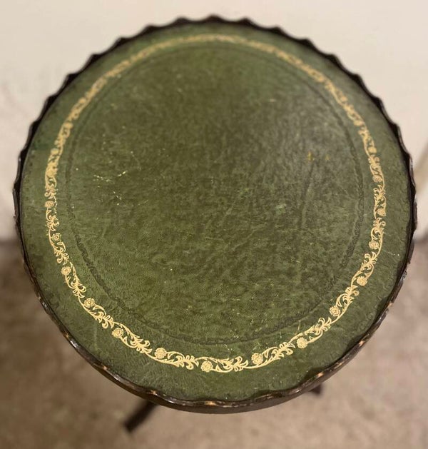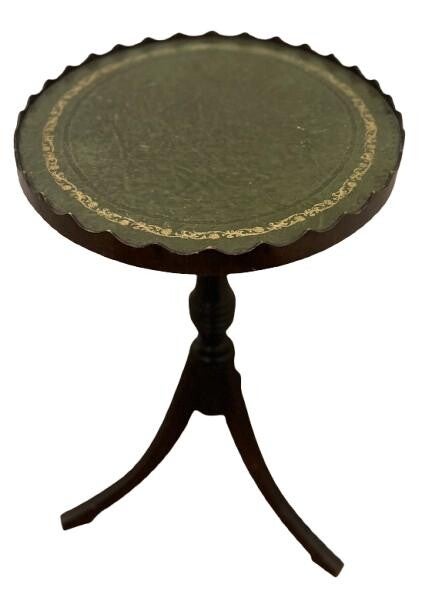 Mid. century Mahogany wine table with tooled green leather top. This are very handy in the lounge room as a drinks table.