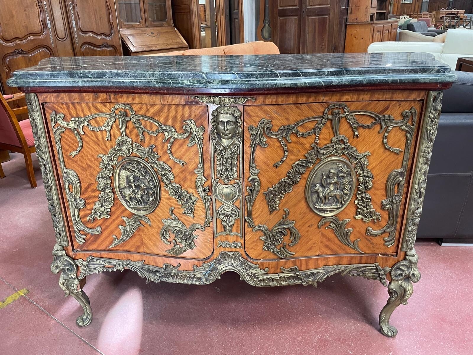 ORNATE LOUIS XV STYLE MARBLE-TOP ORMOLU-MOUNTED CHEST OF DRA
