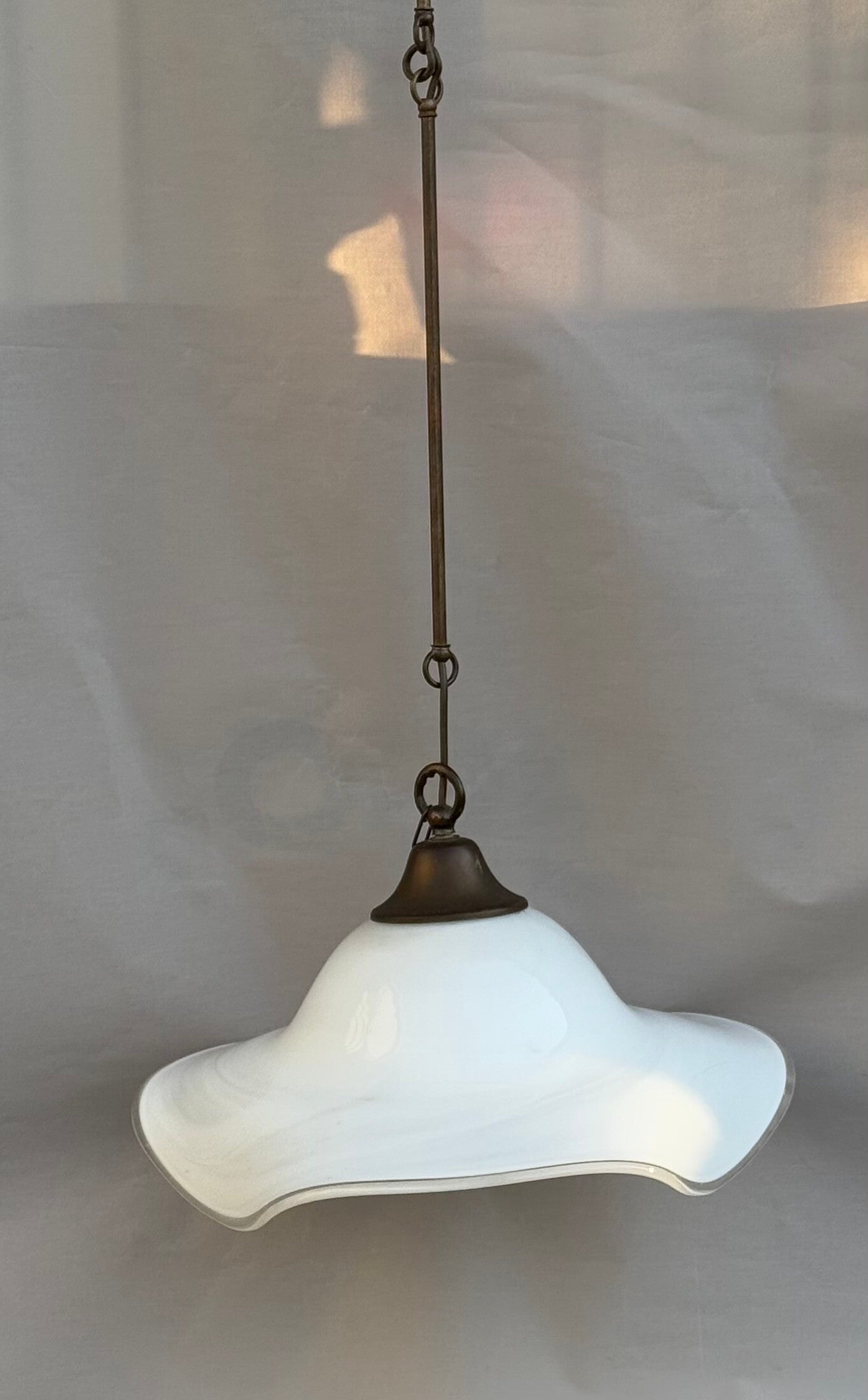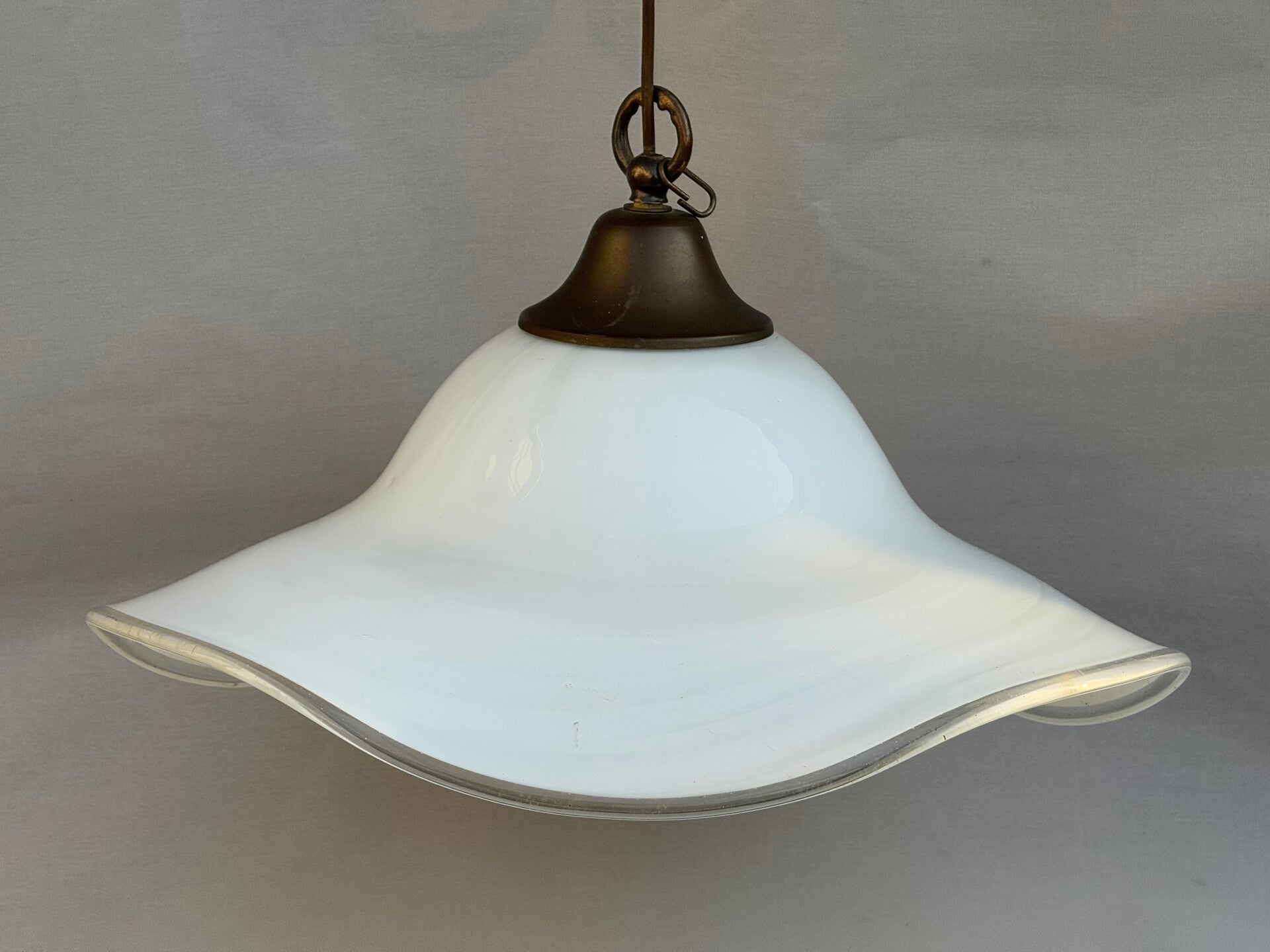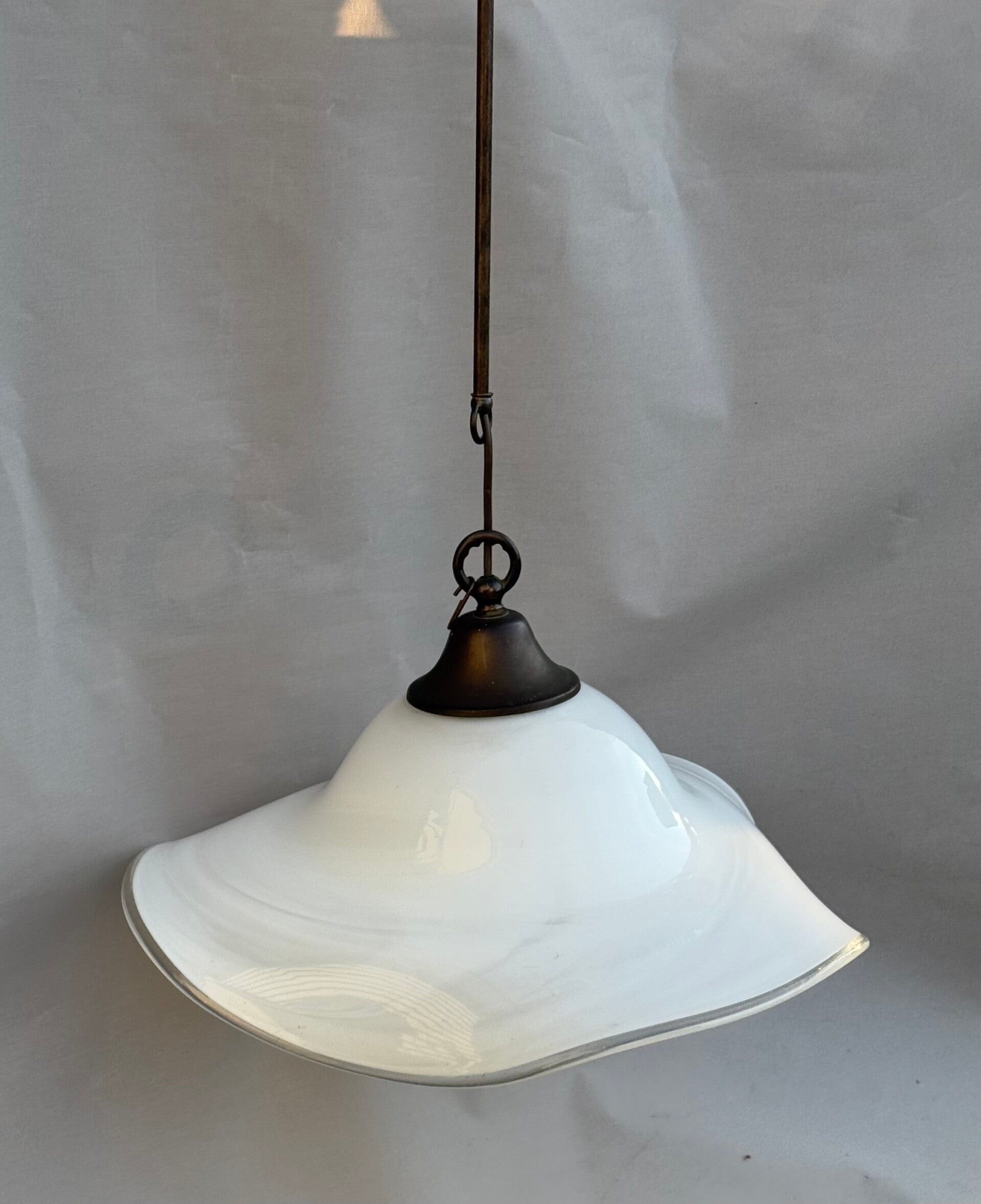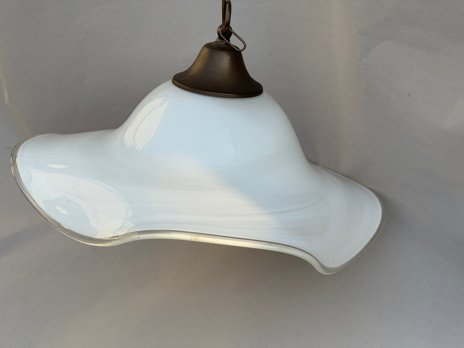 Vintage White Wavy opalin Glass Pendant Lamp / Mid Century Modern Large Ceiling Light / Hanging Swirl Glass Lamp / Made in Italy / 1970s
