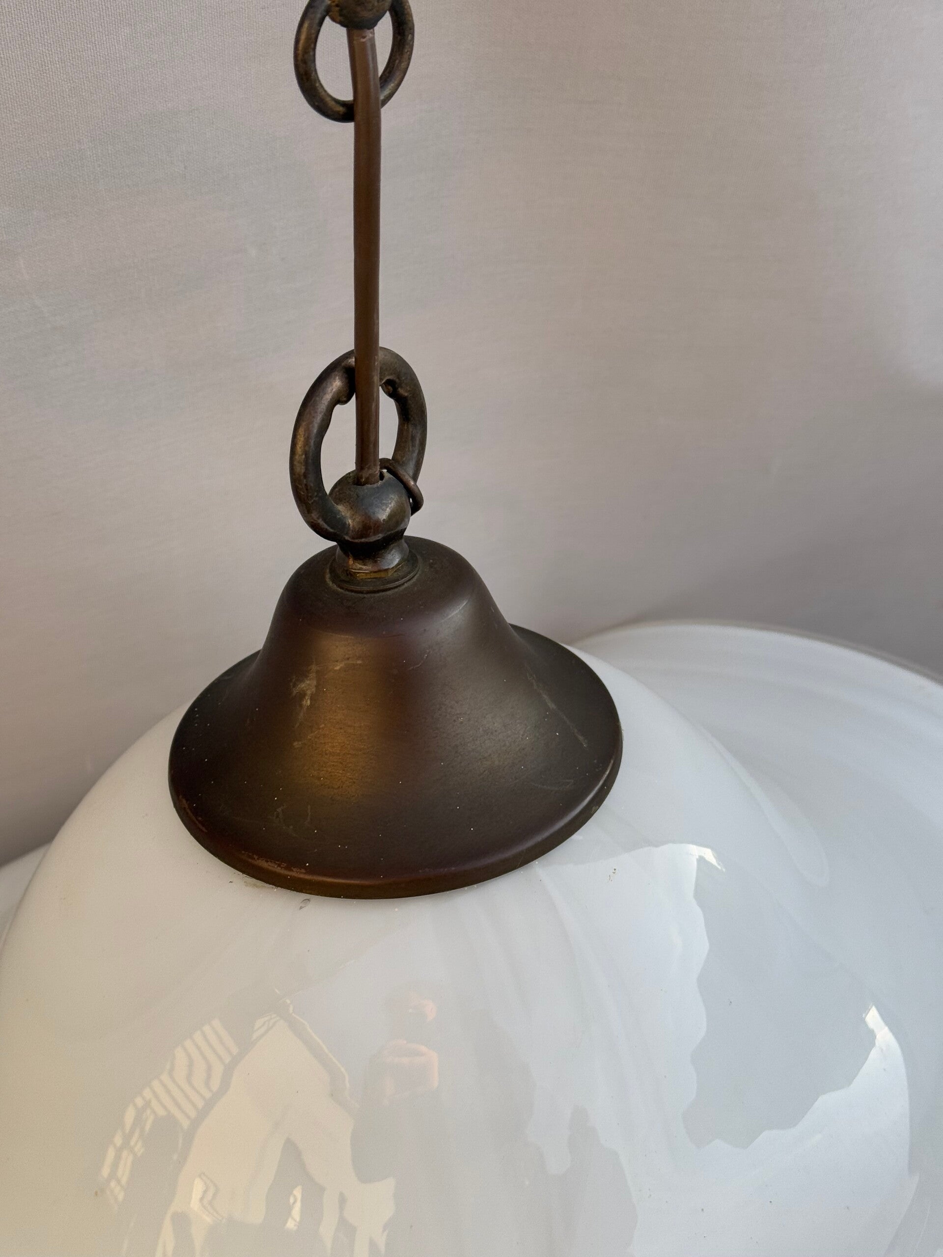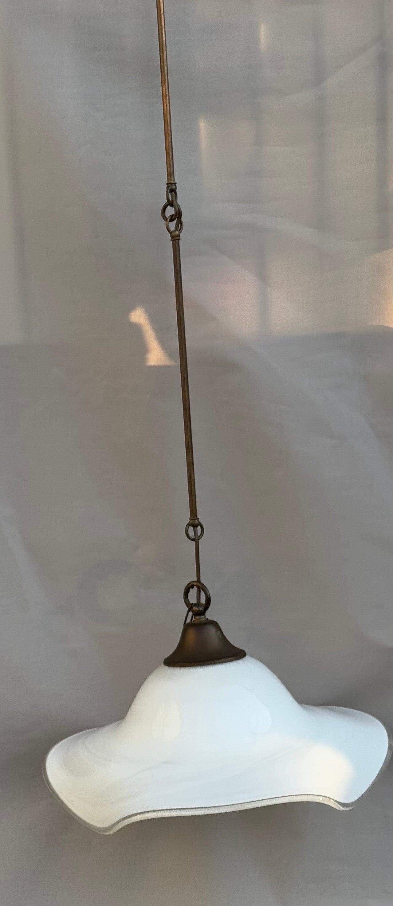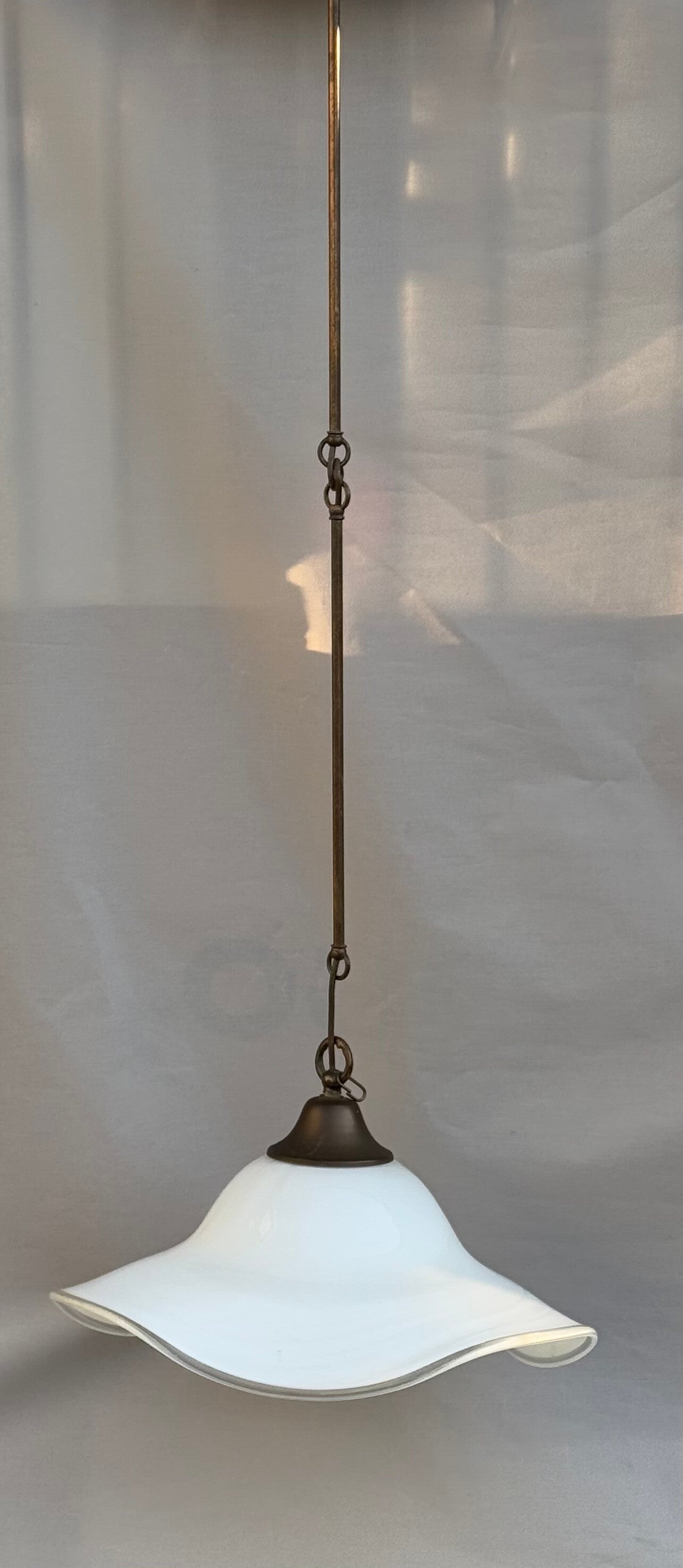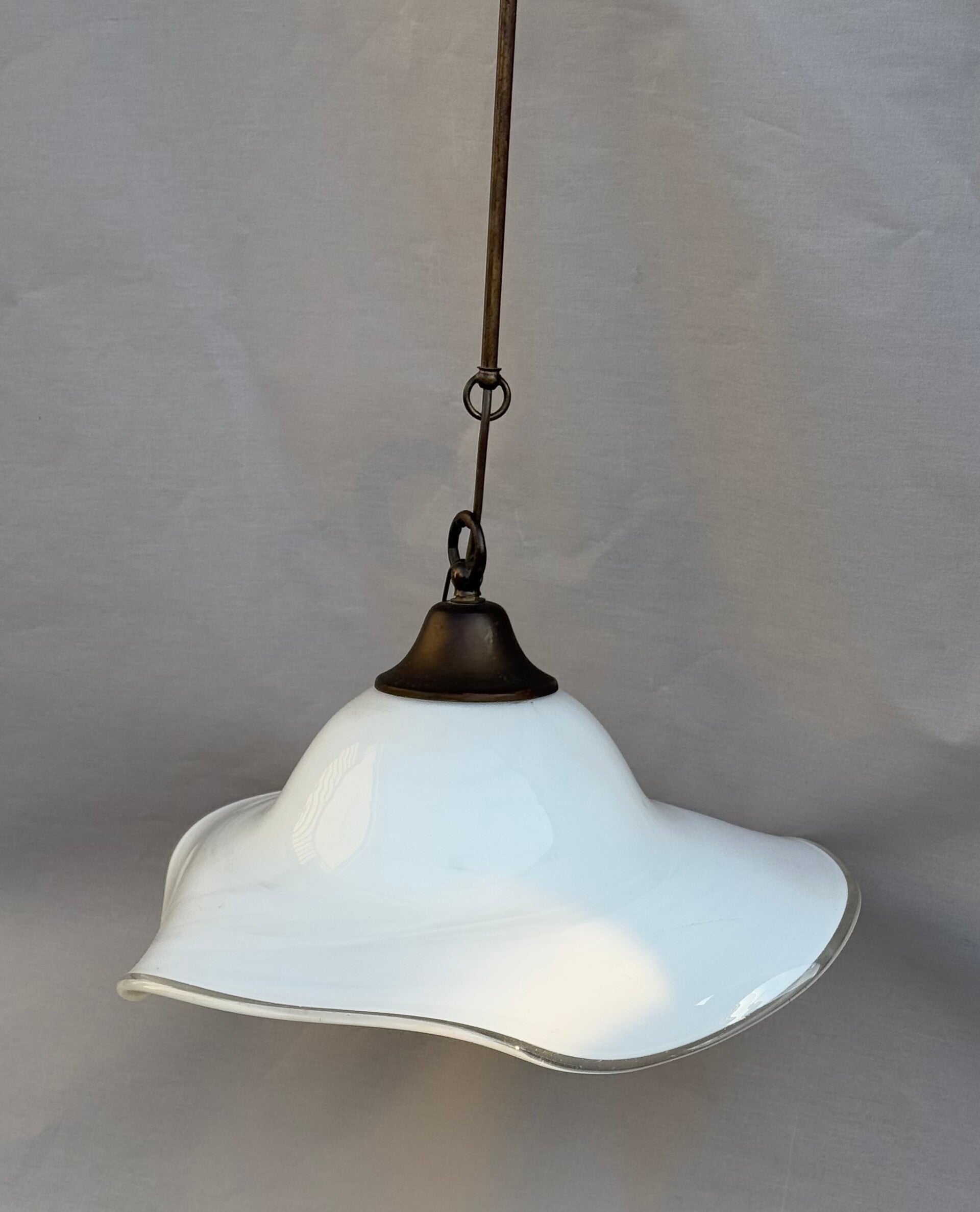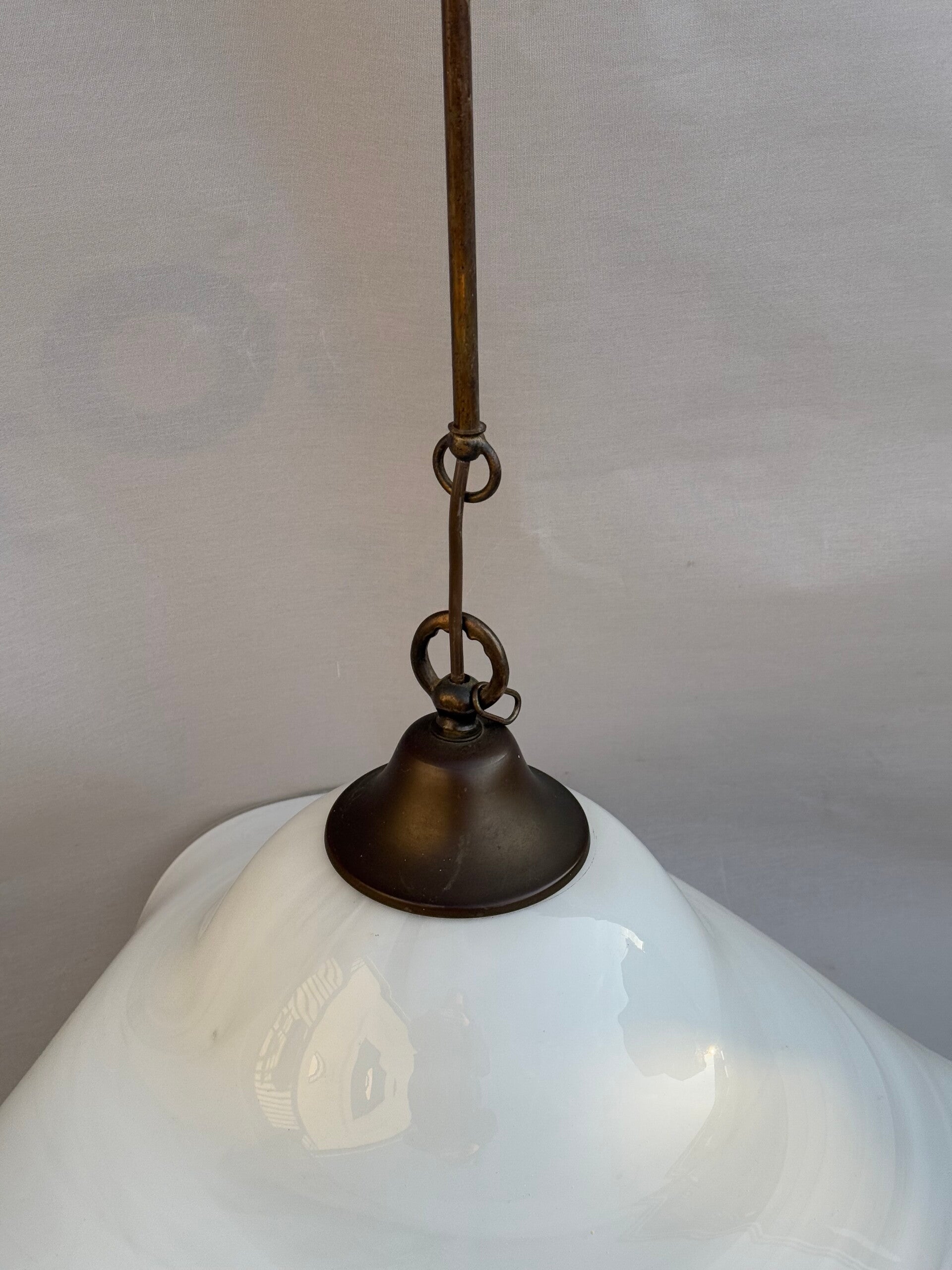 Vintage White Wavy opalin Glass Pendant Lamp / Mid Century Modern Large Ceiling Light / Hanging Swirl Glass Lamp / Made in Italy / 1970s