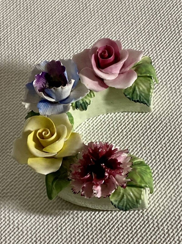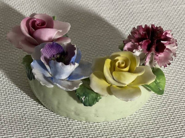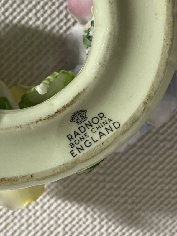Groene porseleinen paardenhoef decoratie: Radnor Bone China England. "Lucky horse shoe"