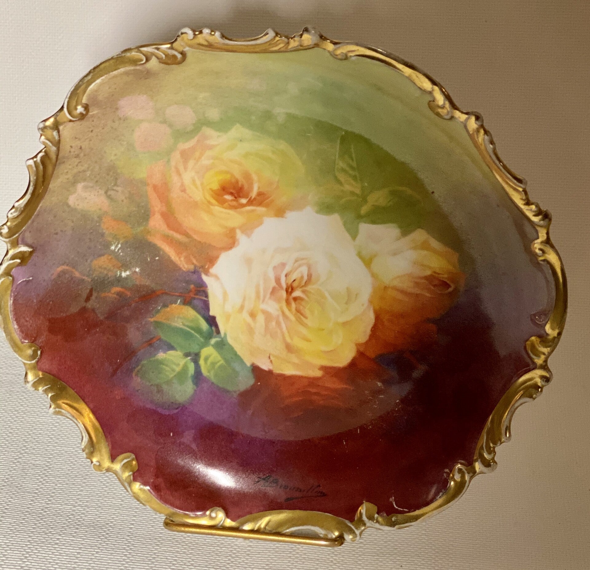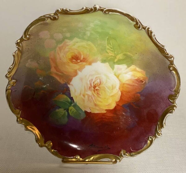 Limoges France handgeschilderde geschulpte wandbord met roos decor. 1891-1914