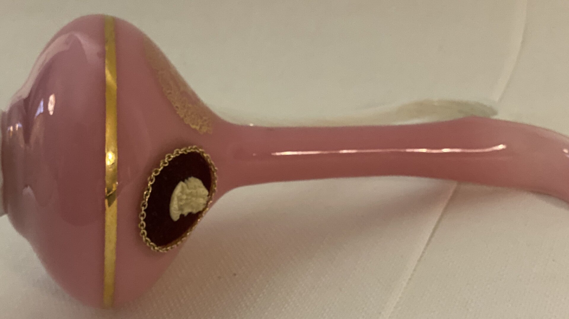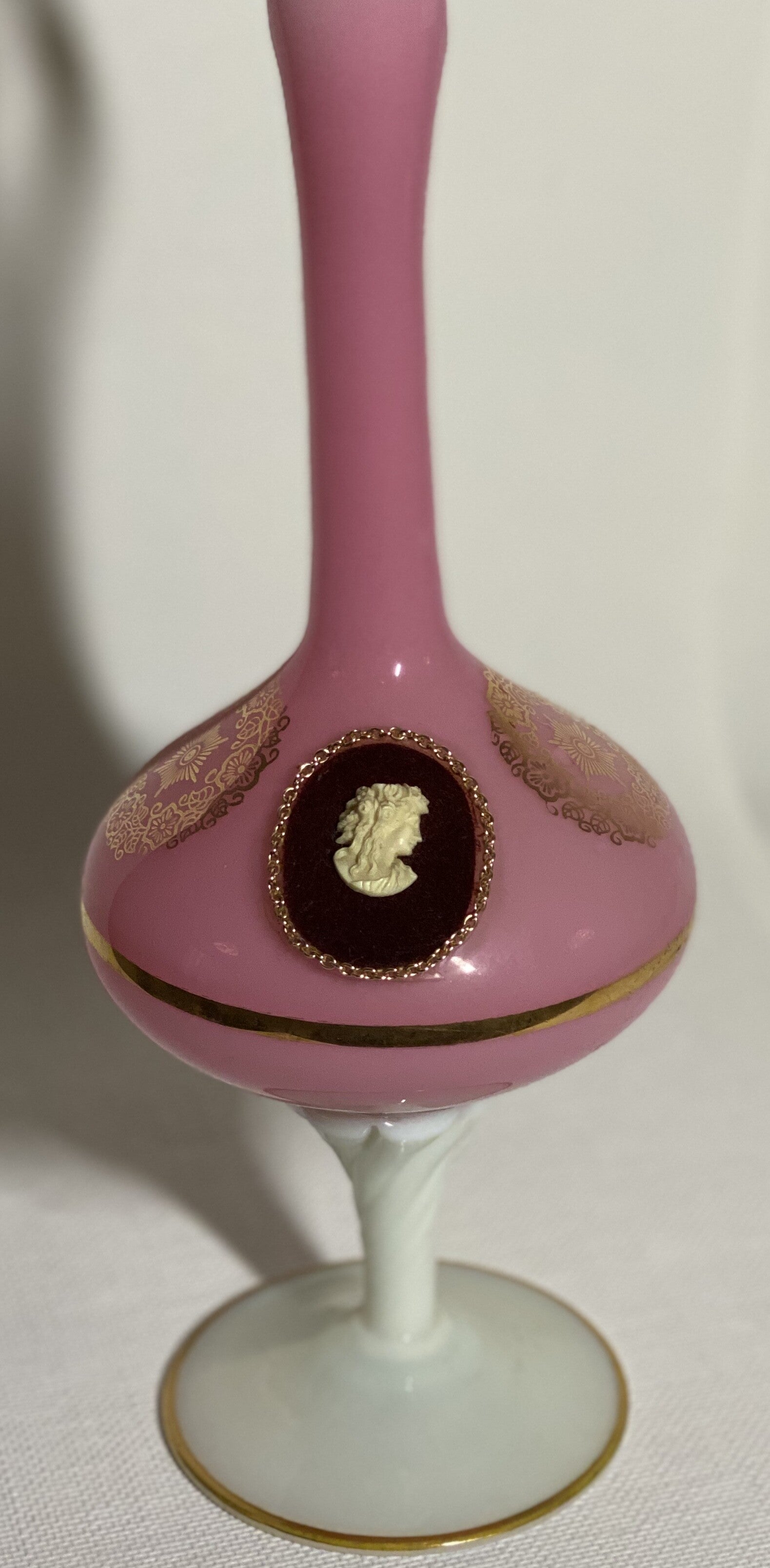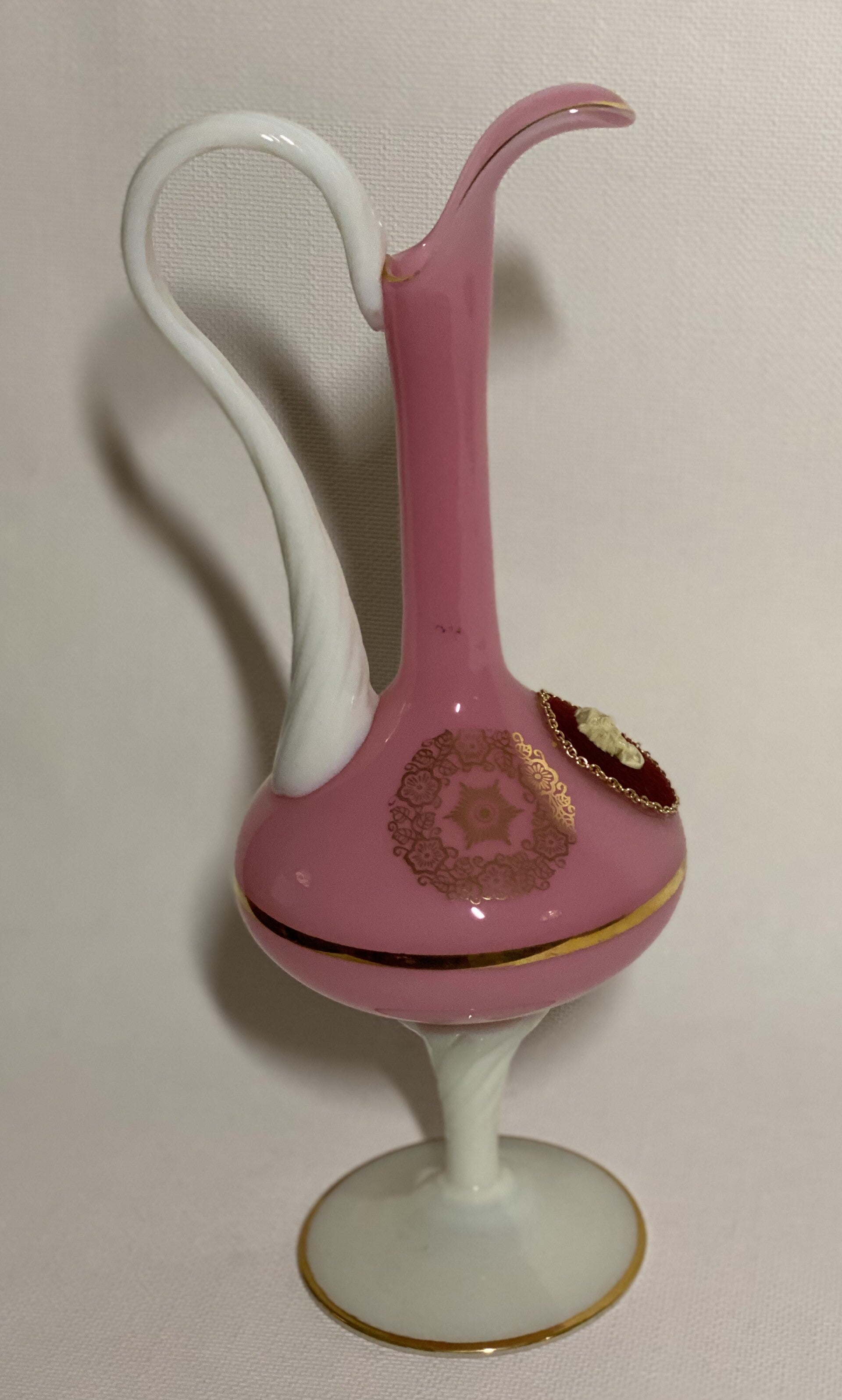 Een roze geëmailleerde opaline karaf met handvat, Frankrijk, mogelijk Baccarat, 1880.