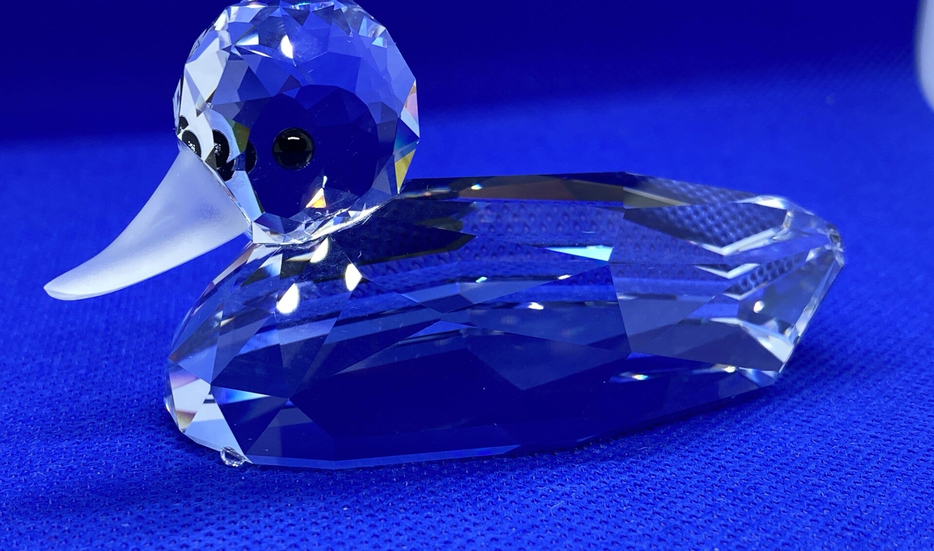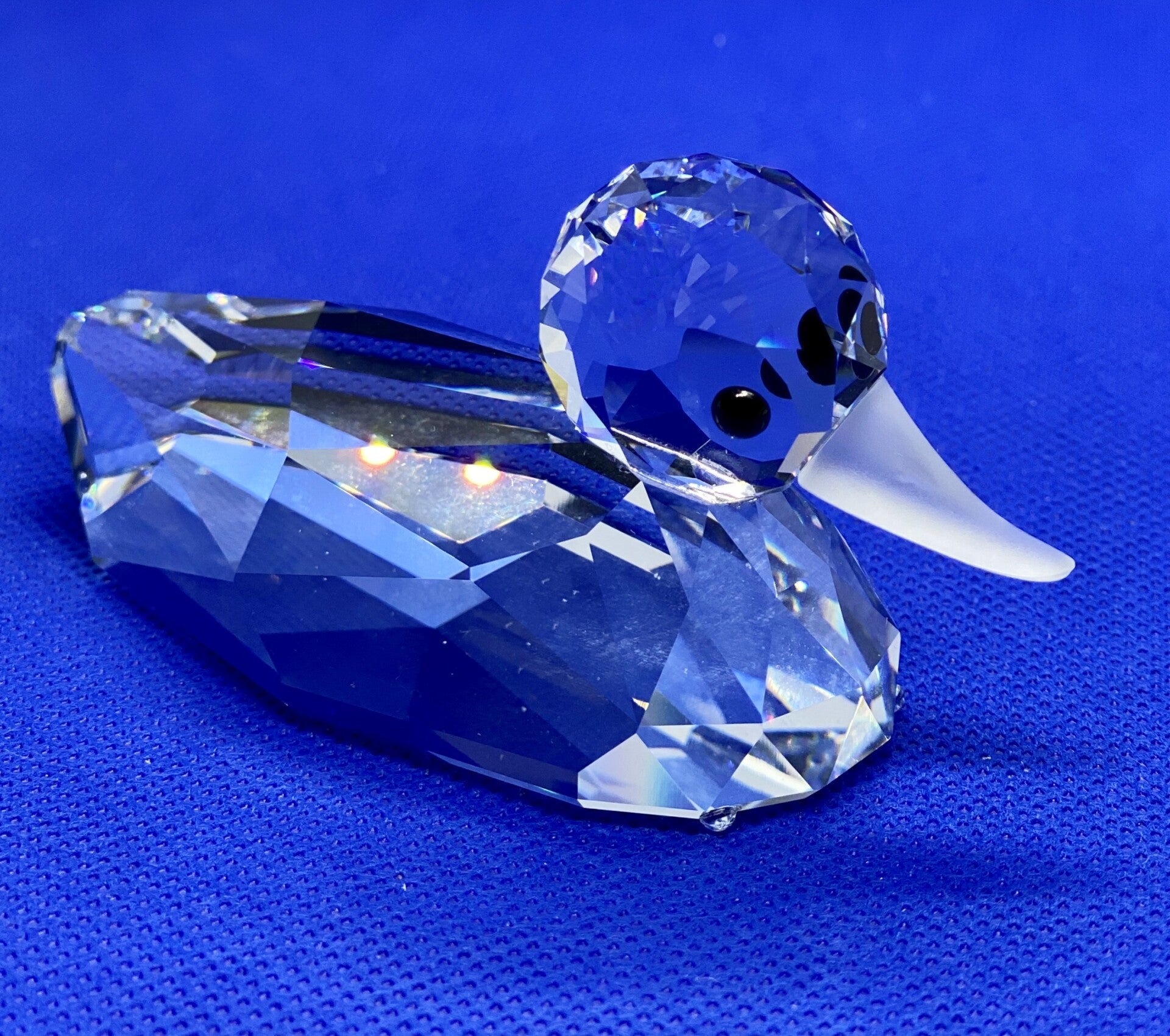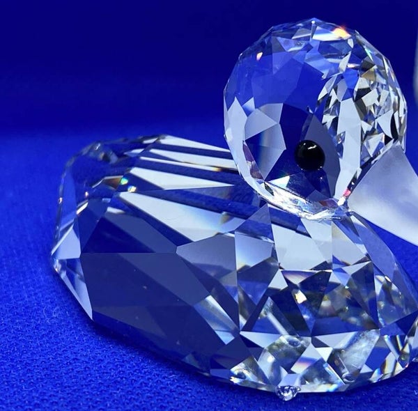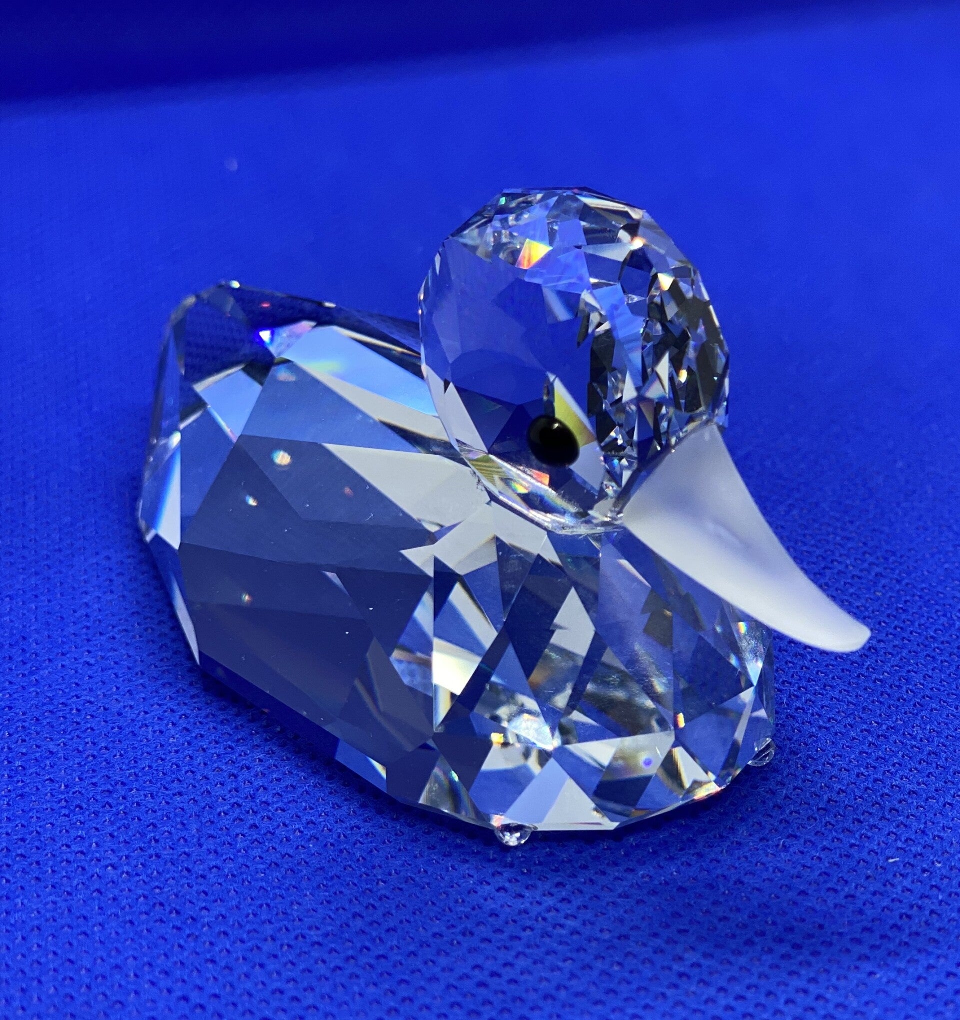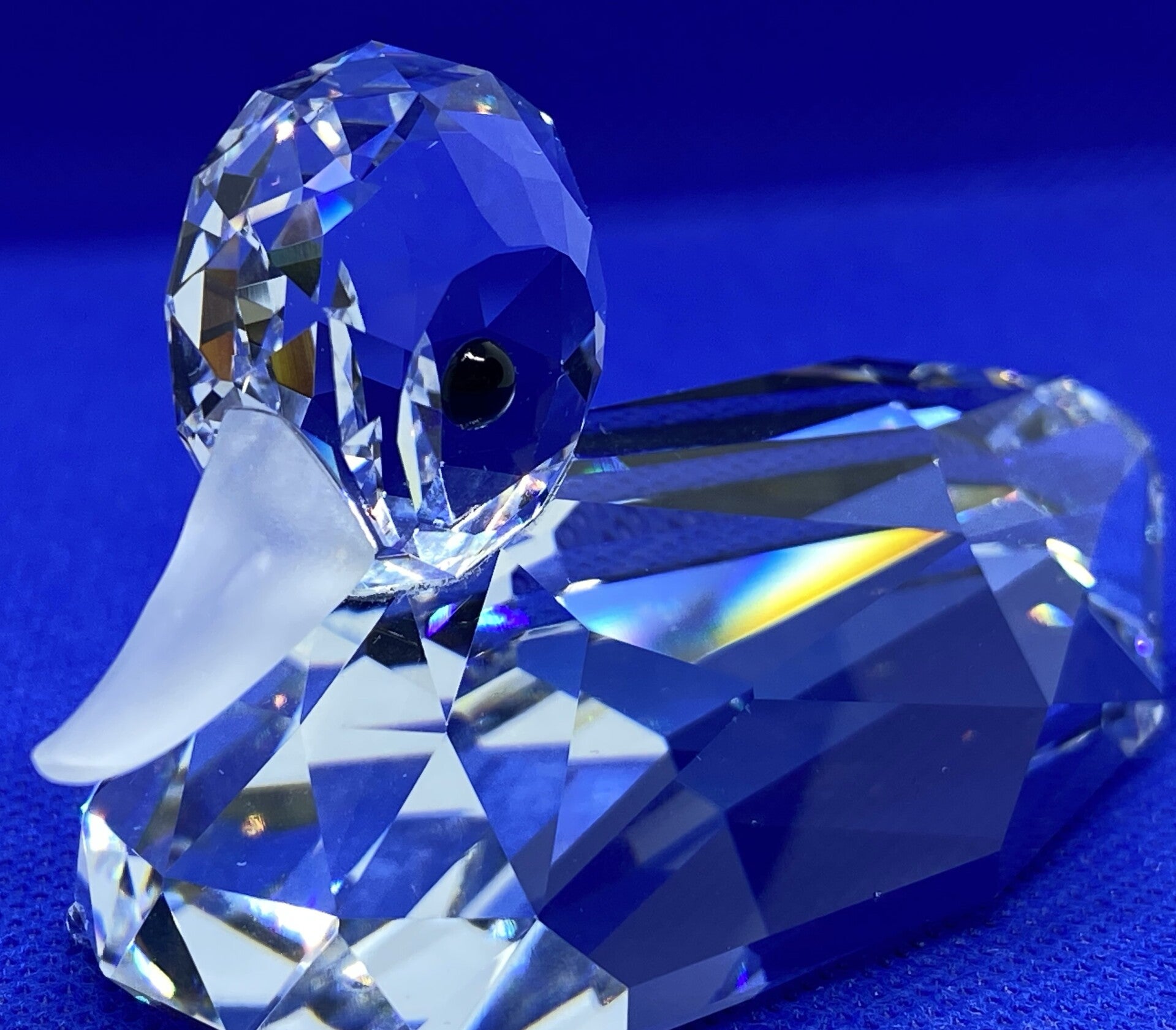 Kristallen Swarovski eendje met een gematteerde snavel en zwarte ogen.