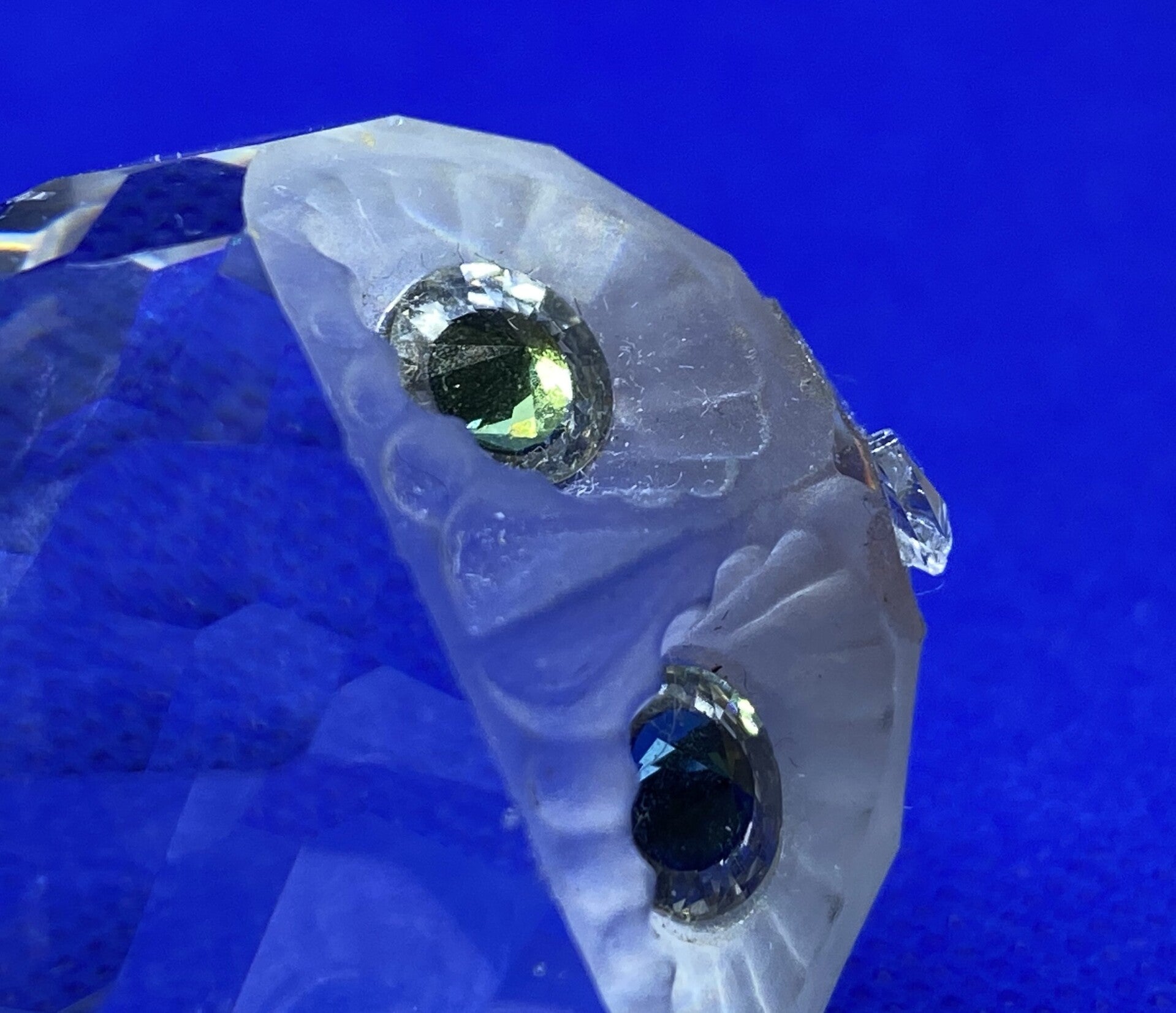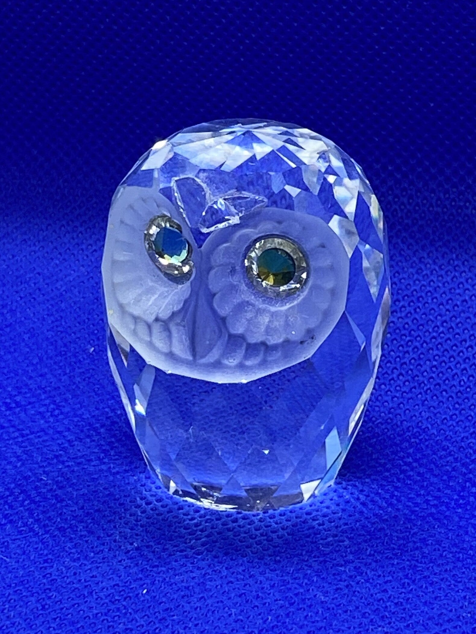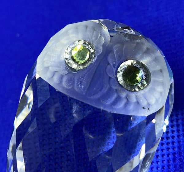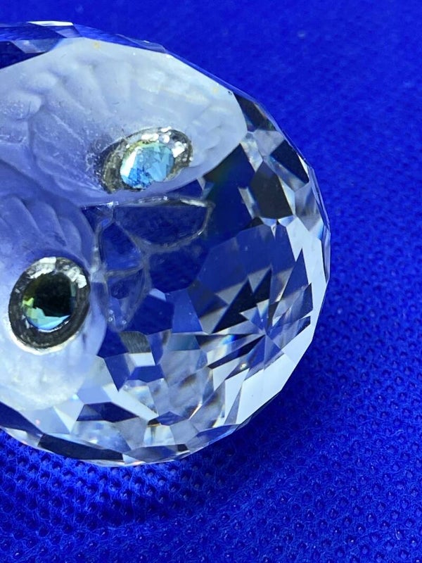 Swarovski nachtuil (1996) uit het thema: Gevederde schoonheden ontworpen door Anton Hirzinger. Deze uil heeft een gematteerd aanzicht met goud/gele ogen.