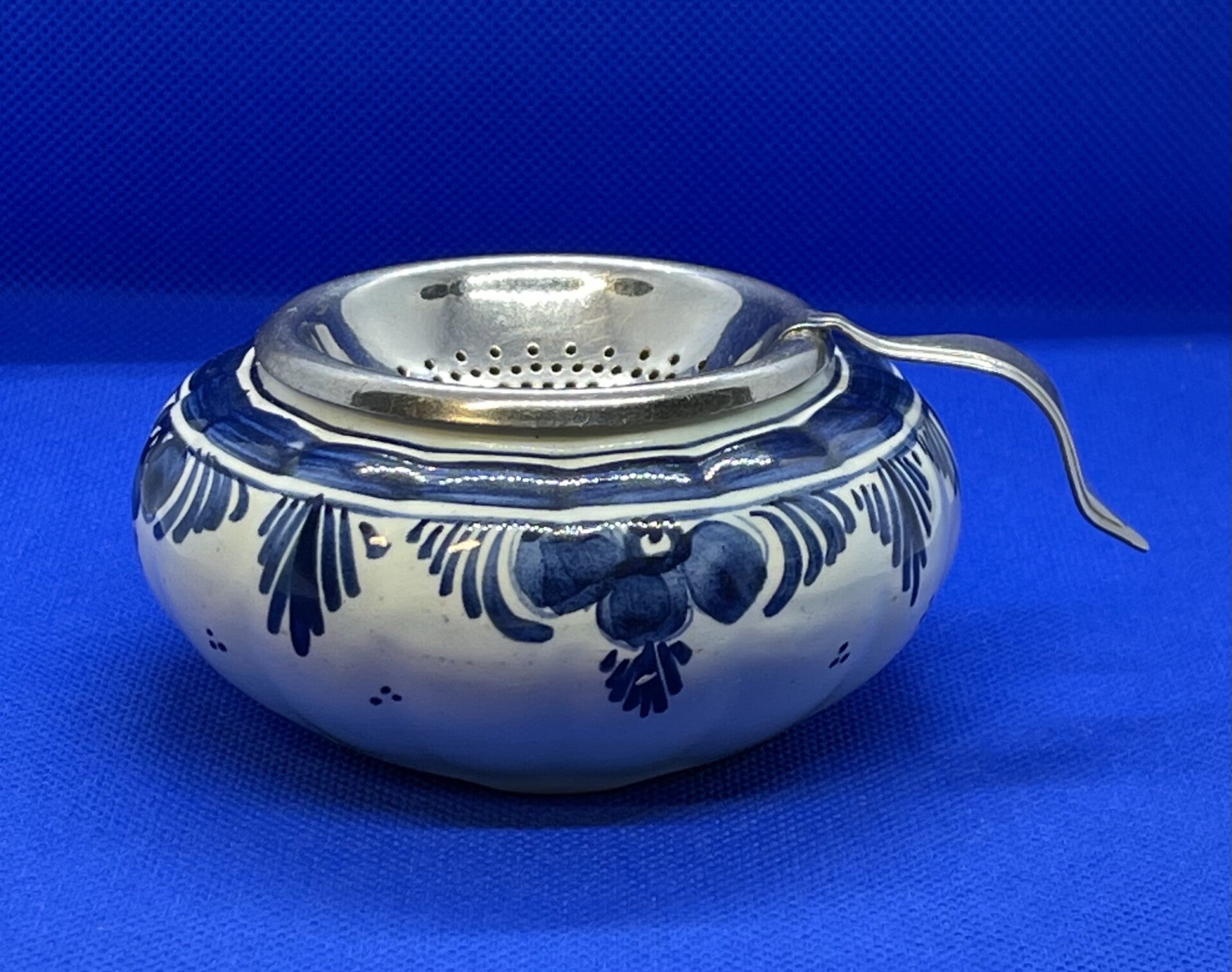 Oud hollandse Delfts blauwe theezeefje (verzilverd)