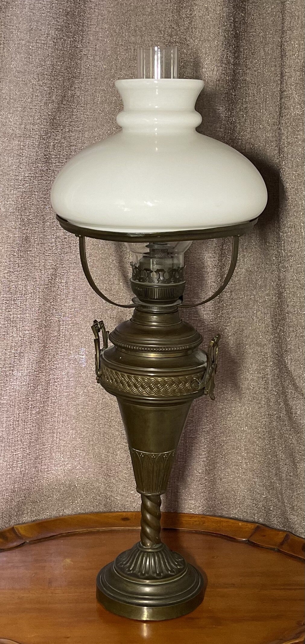 Hoogte: 75cm, doorsnede onderkant: 15cm en doorsnede melkglas: 24cm.