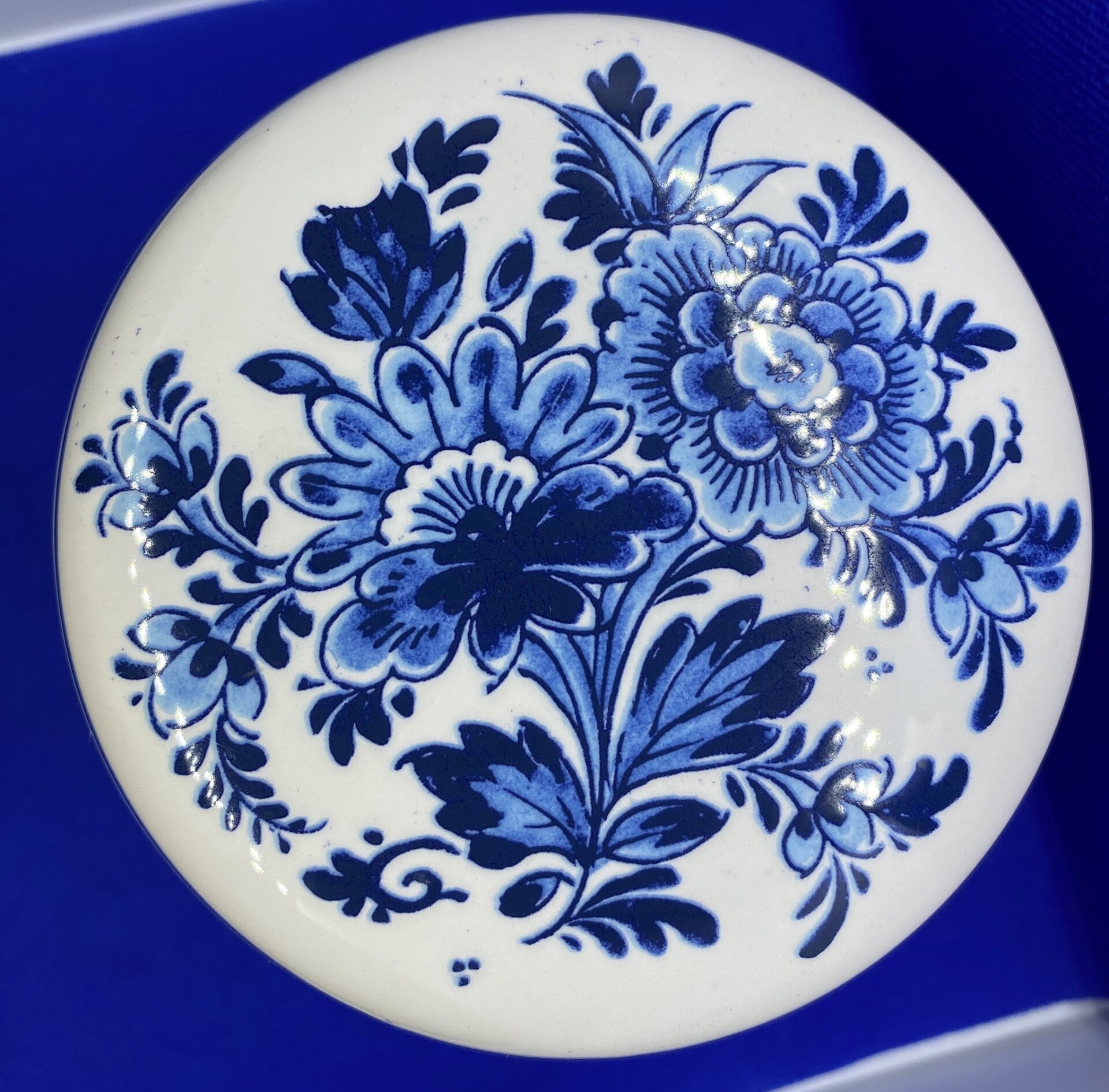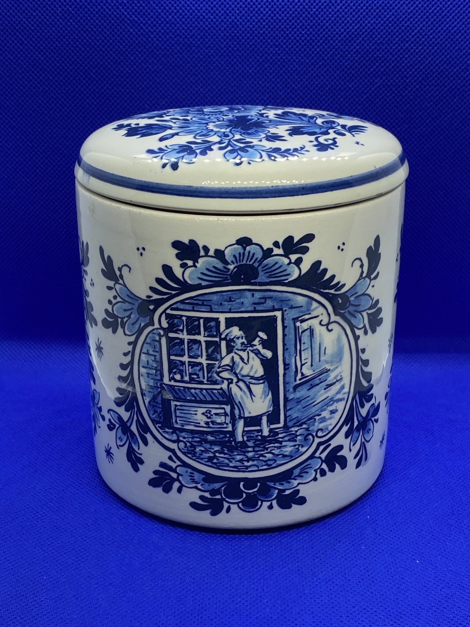Porseleinen delfts blauwe 'Goudsche stroopwafels' pot/ voorraadbus.