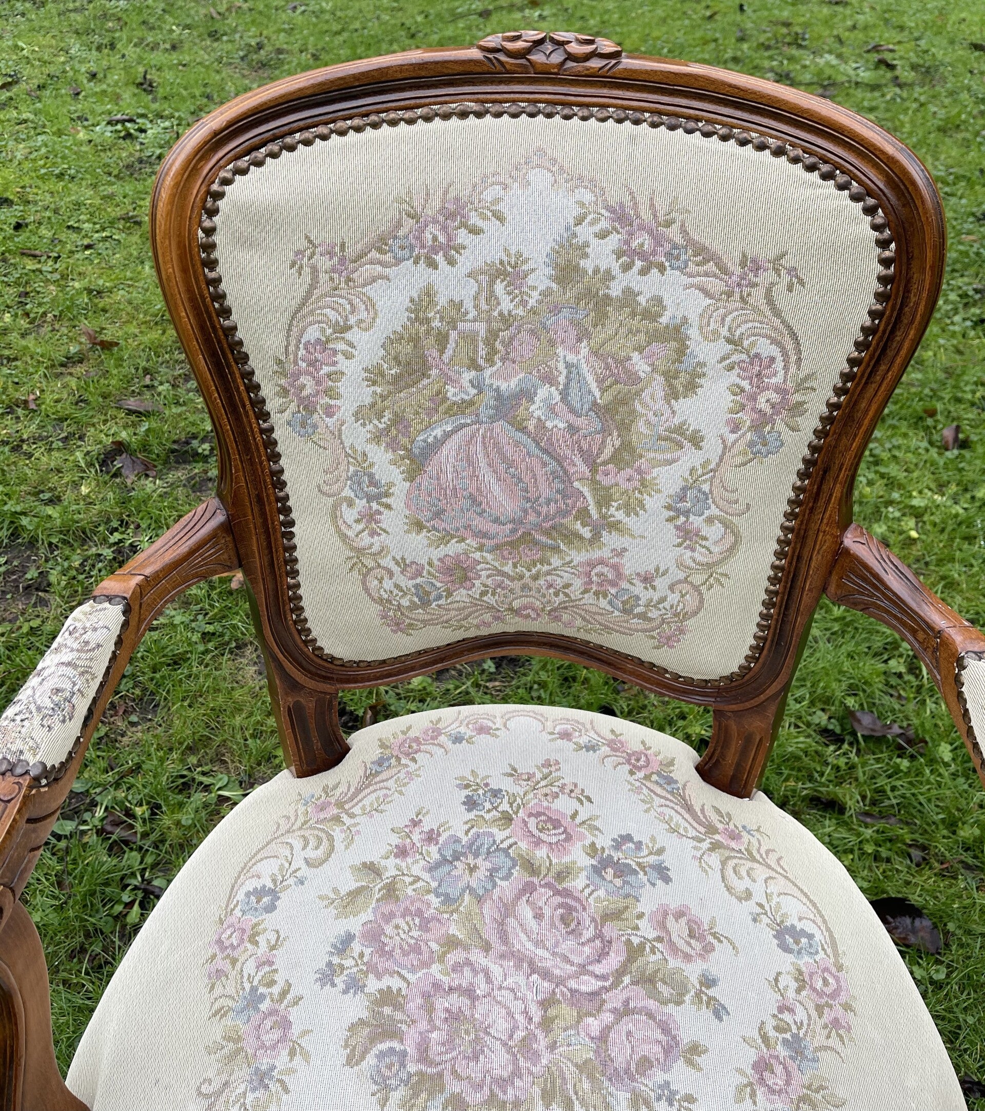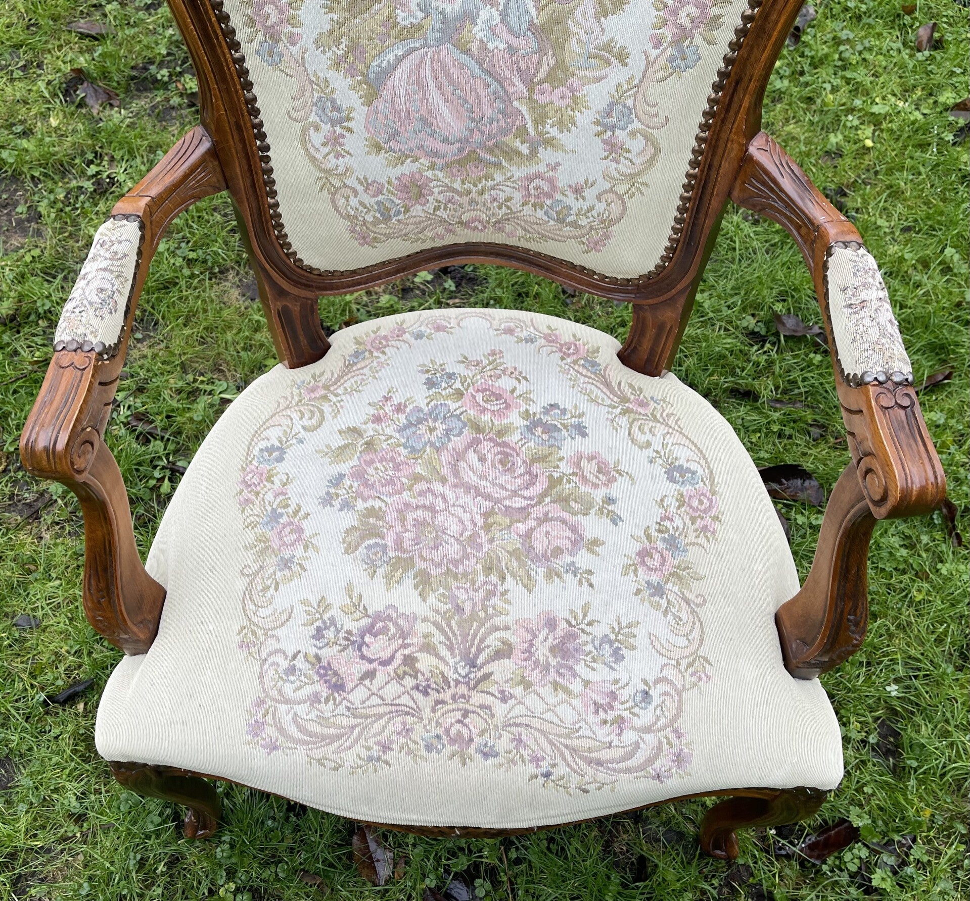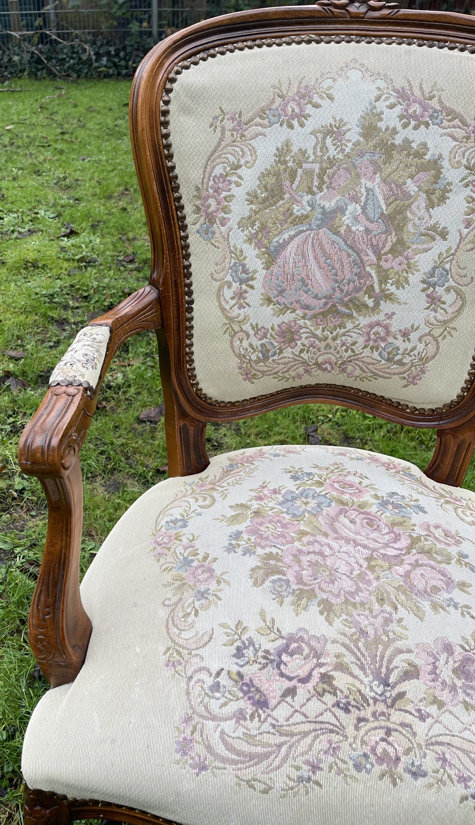 Hoogte: 90cm, van armleuning naar armleuning: 61cm, rugleuning: 45cm x 53cm, zitvlak: 61cm x 63cm en van grond naar zitvlak: 40cm.