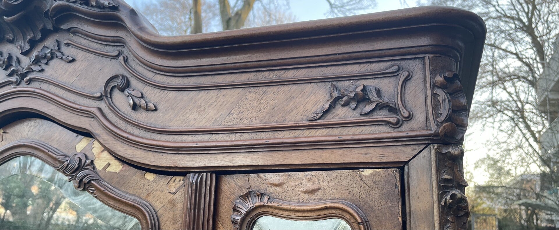 19e eeuwse antieke kast met gedetailleerde decoratie.