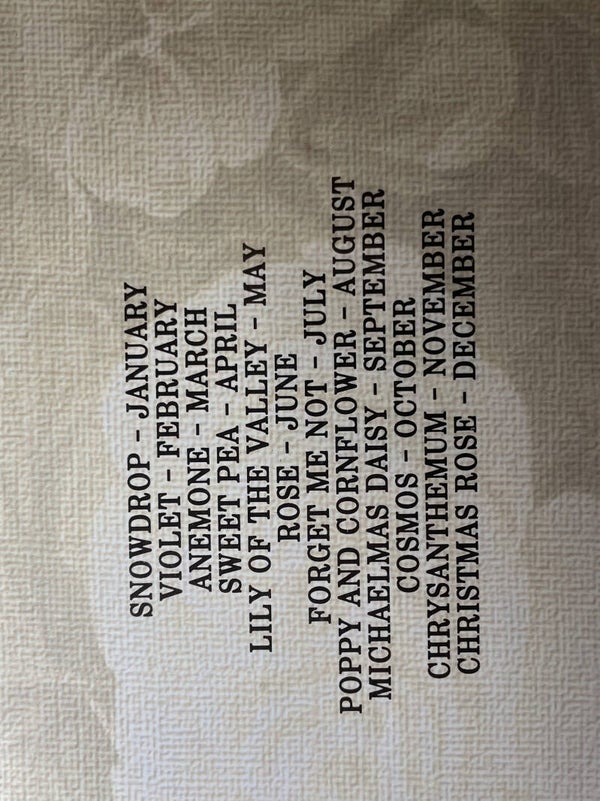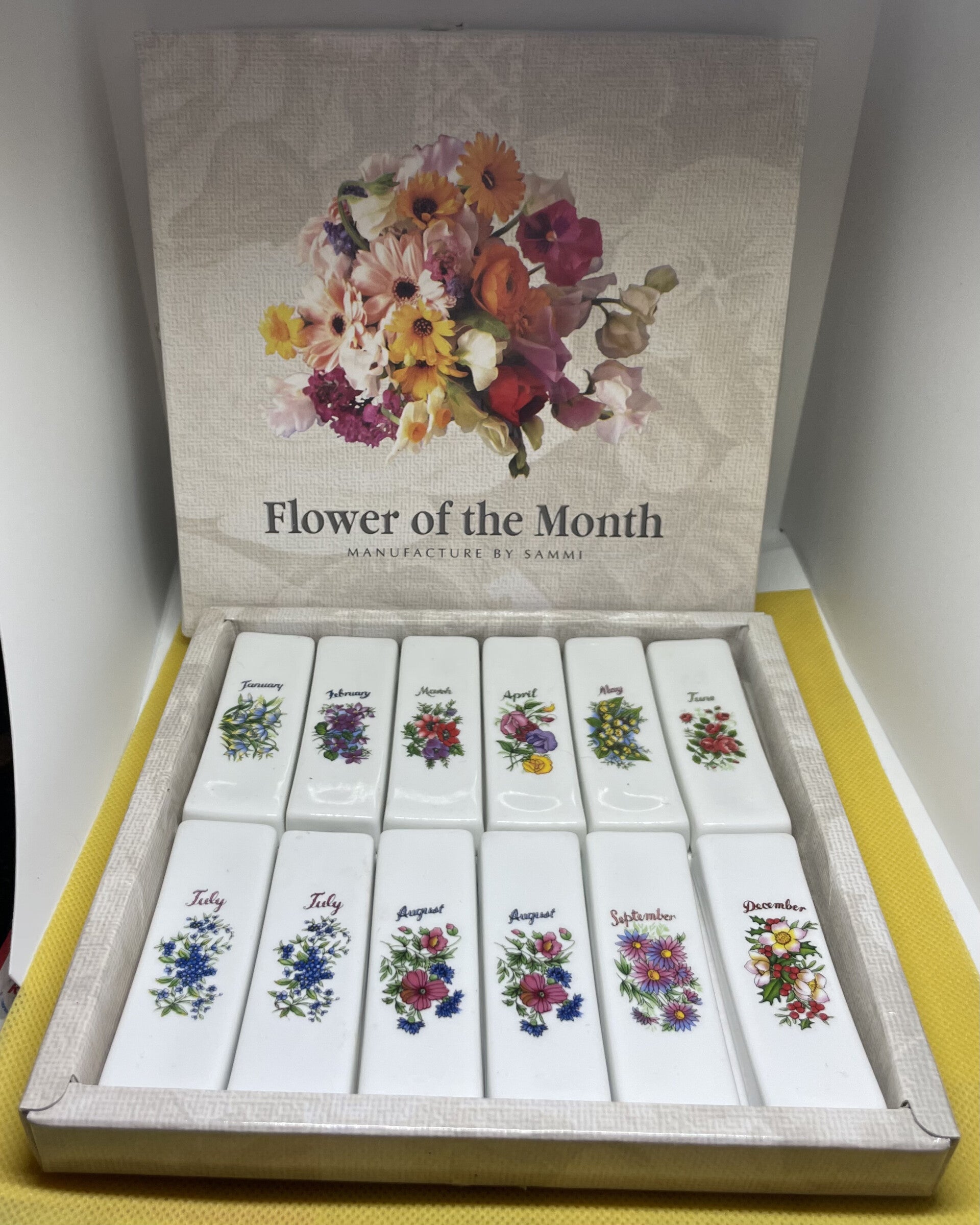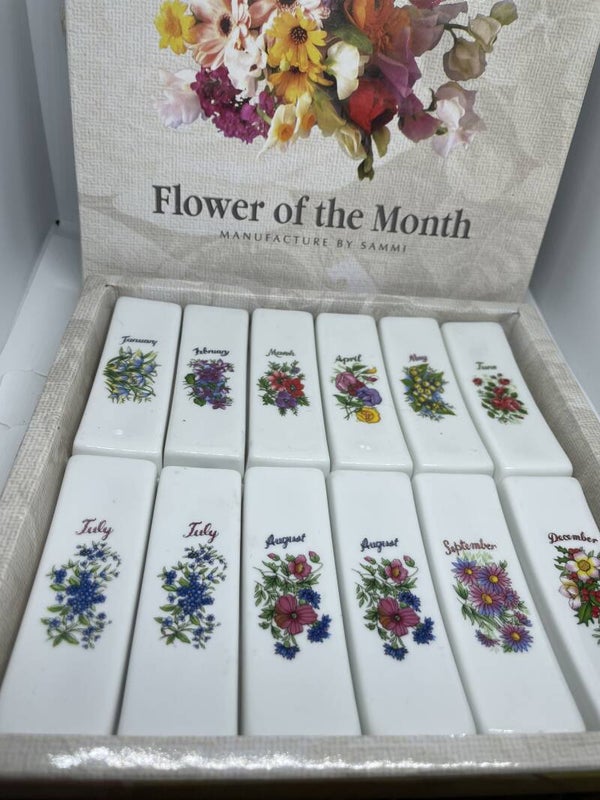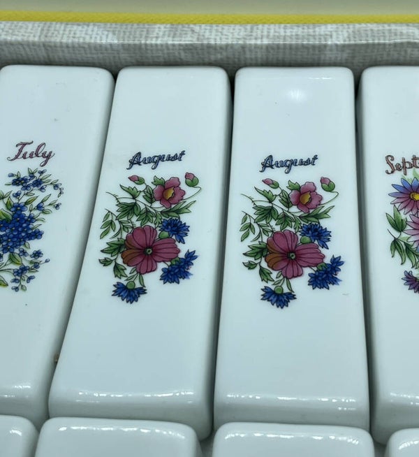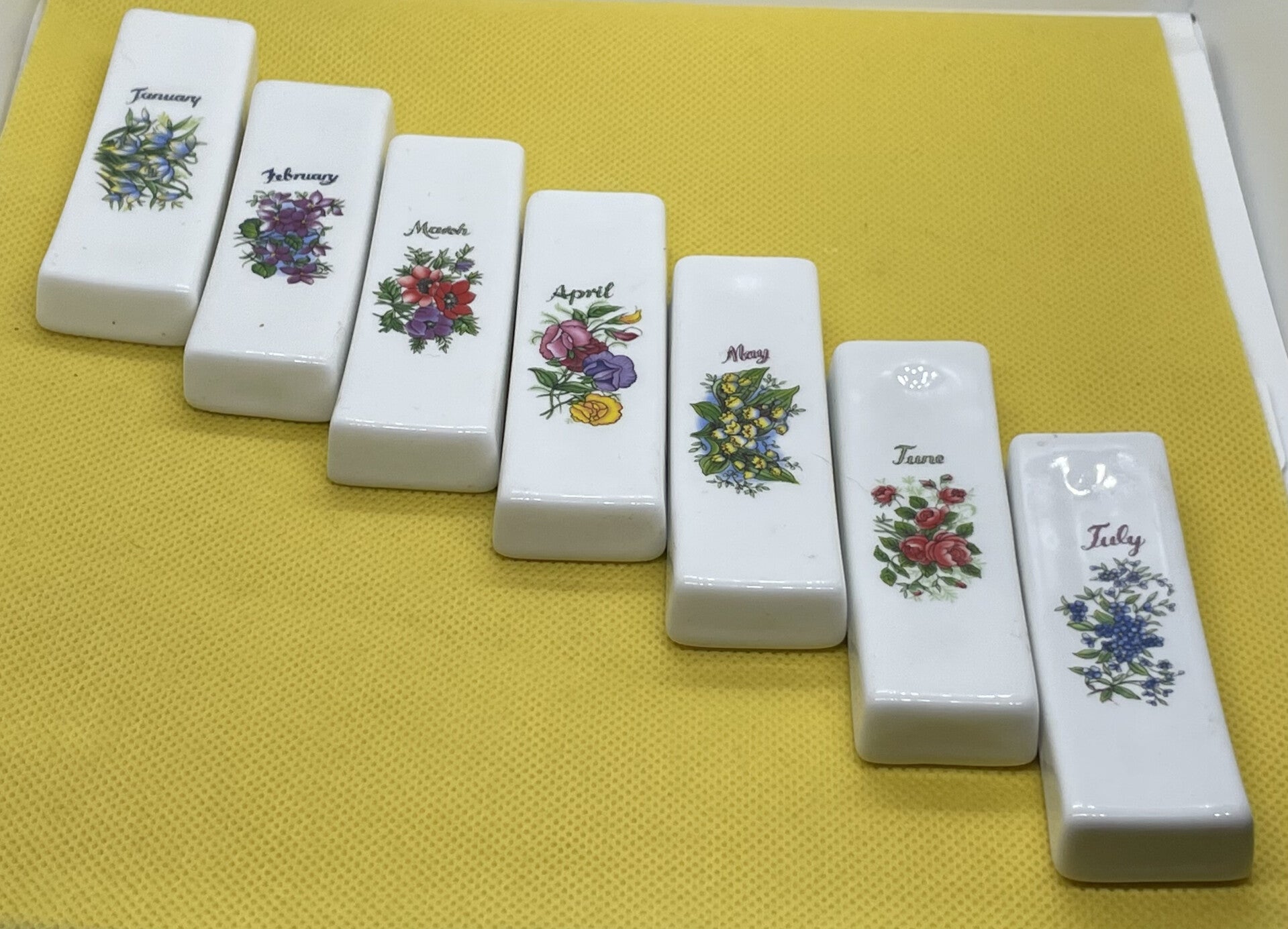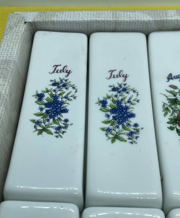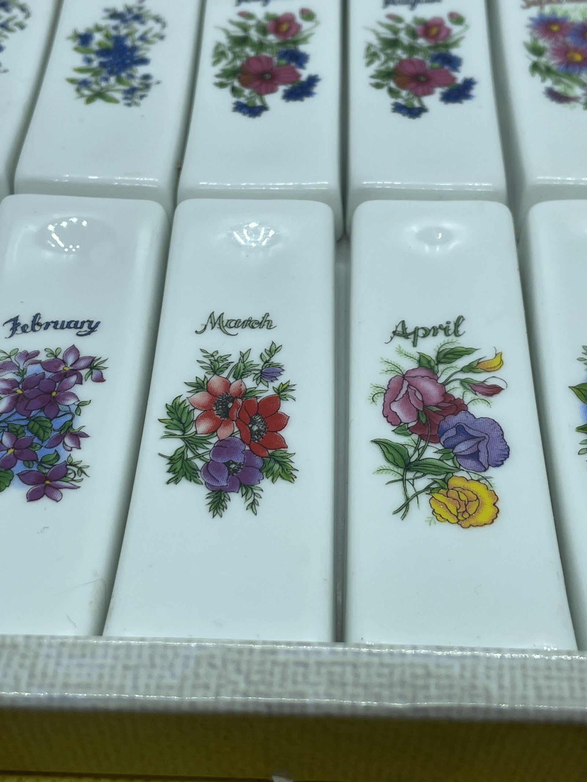 Flower of the month knife rests. Bone China. Bloemrijke proseleinen messenrust set. met bloemen en de maanden van het jaar. Manufacture by Sammi.