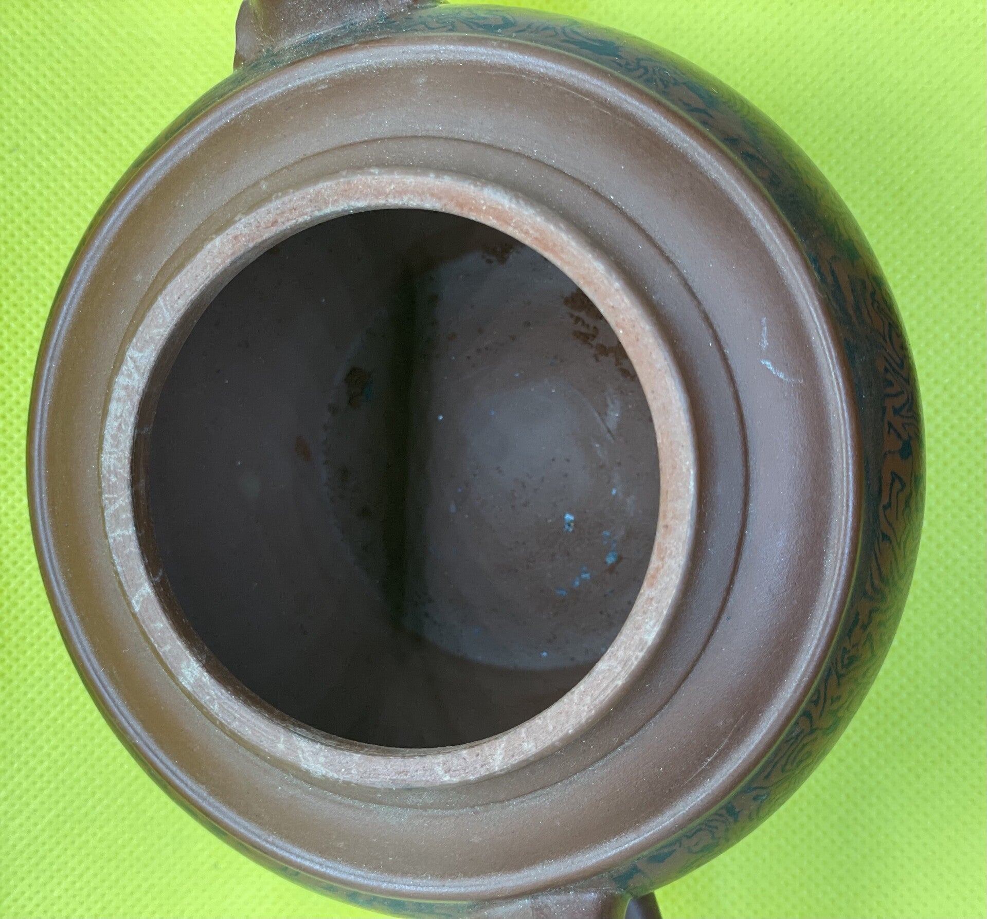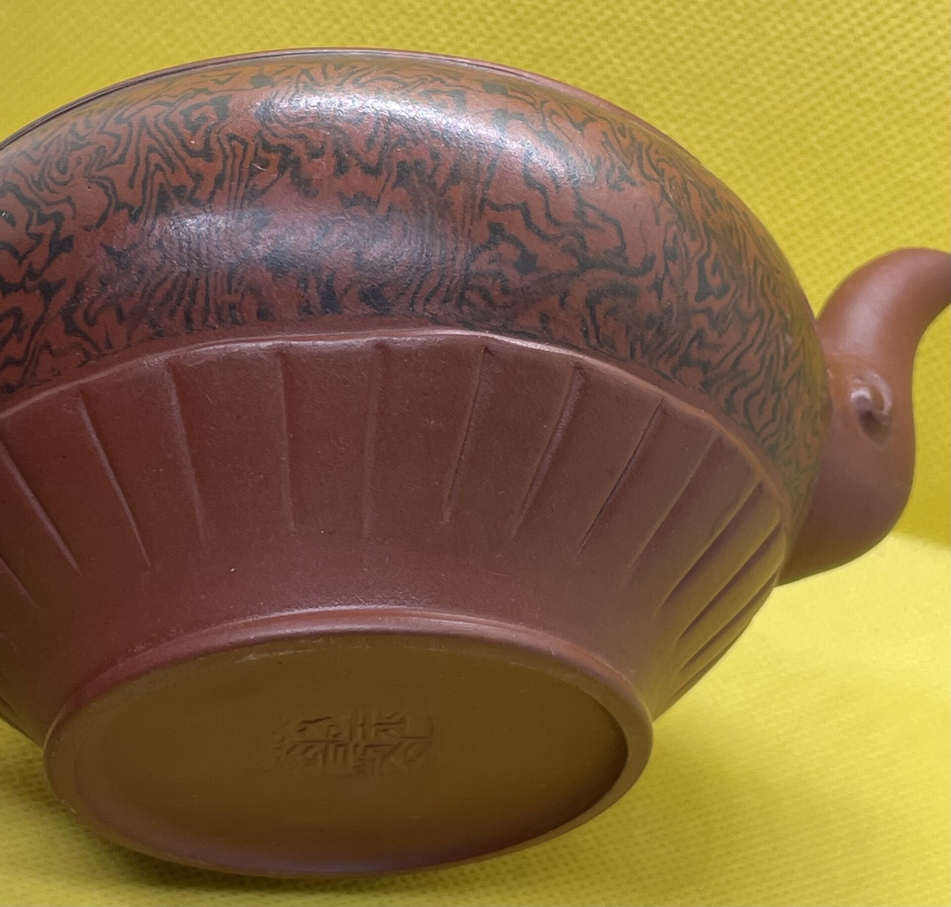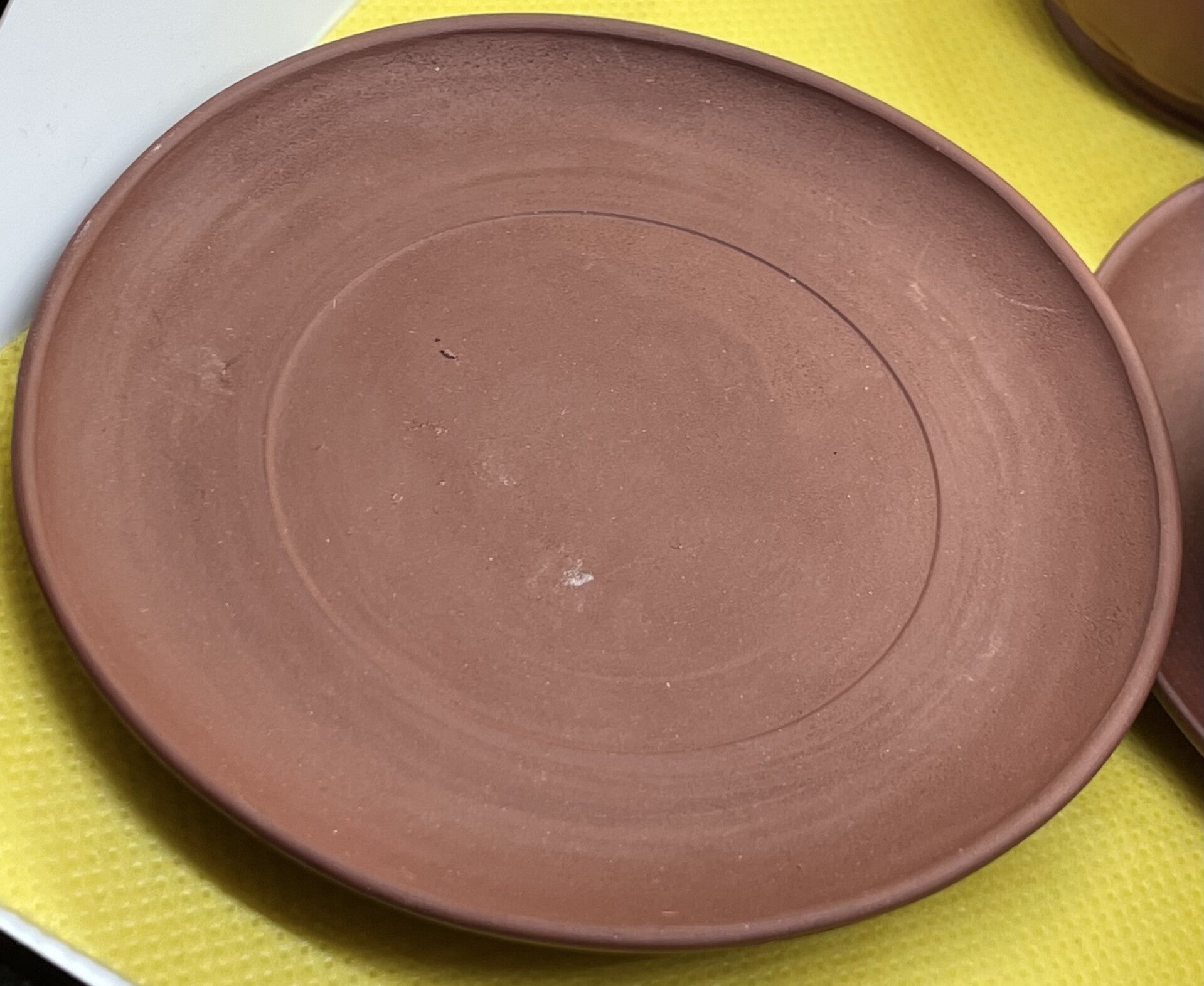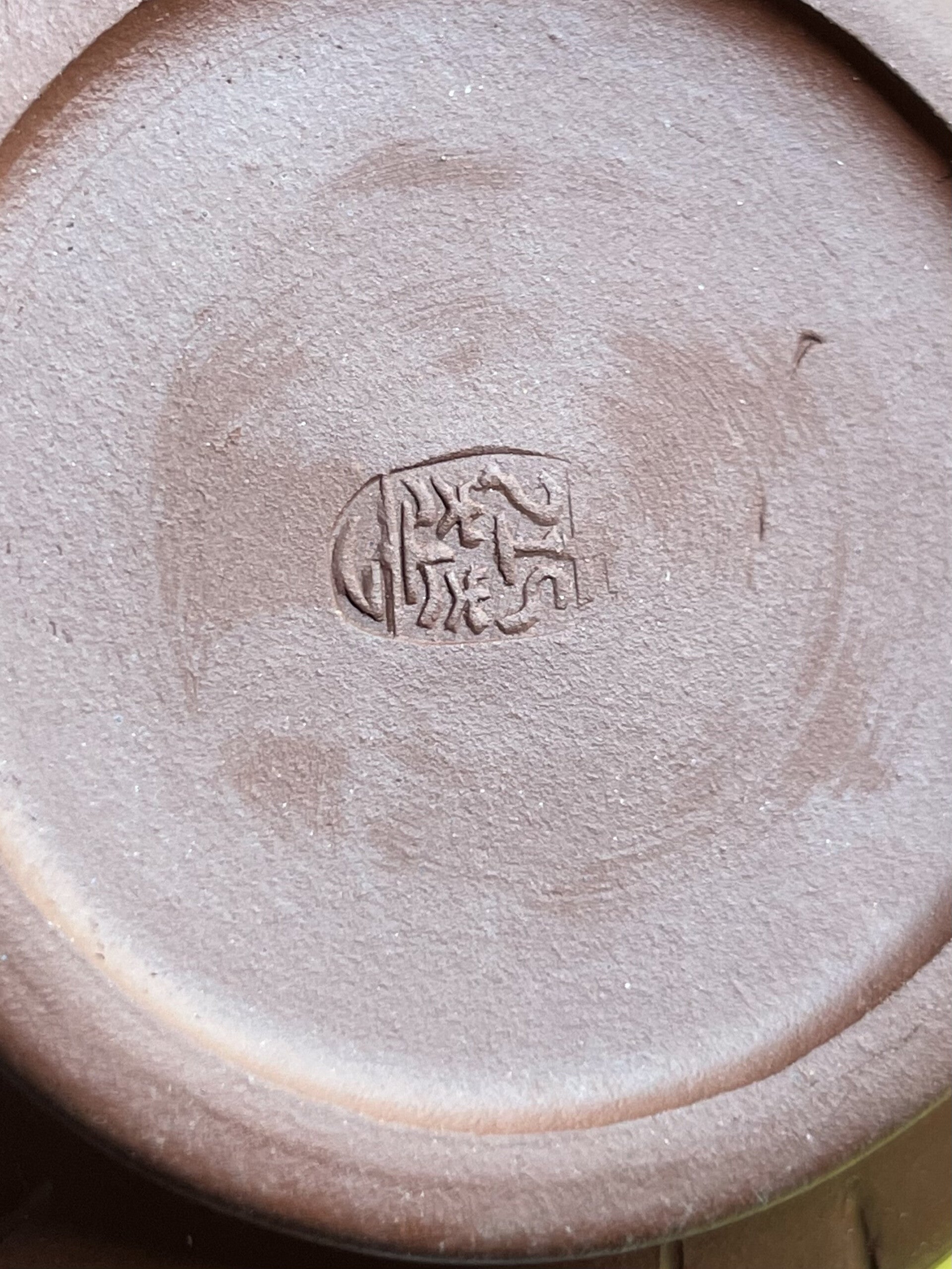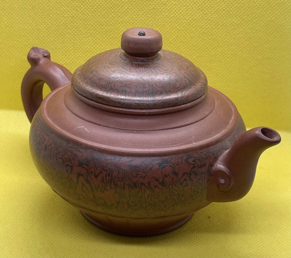 5 theekopjes en schoteltjes en een theepot. Chinese Zisha/ Yinix theepotjes, gegraveerd.