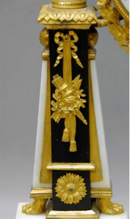 Zwart/wit marmeren pendule met vuurvergulder ornamenten uurwerk met zonneslinger. Piolaine à Paris, c.a. 1790.