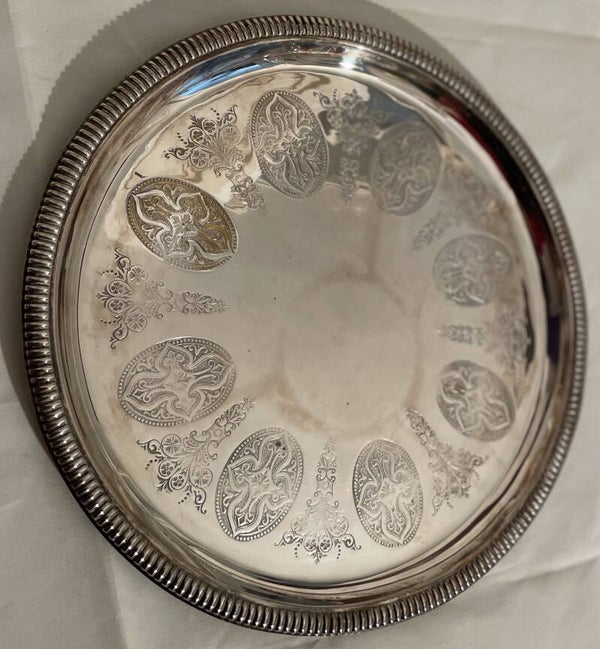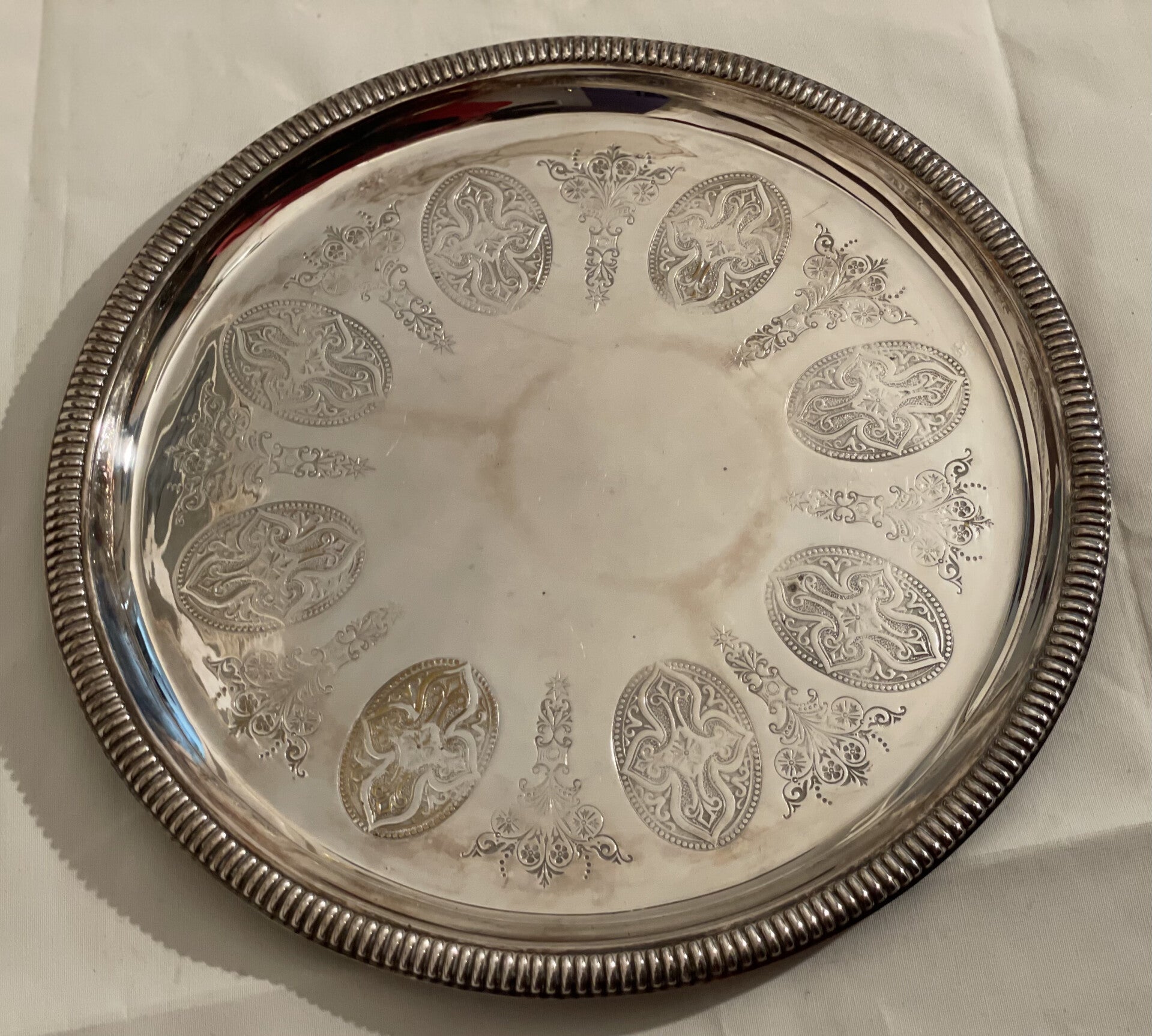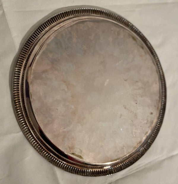 diameter dienblad: 30cm, hoogte van het glas: 3,5cm, diameter van kristal in het midden: 8cm, diameter totale kristal: 23cm.