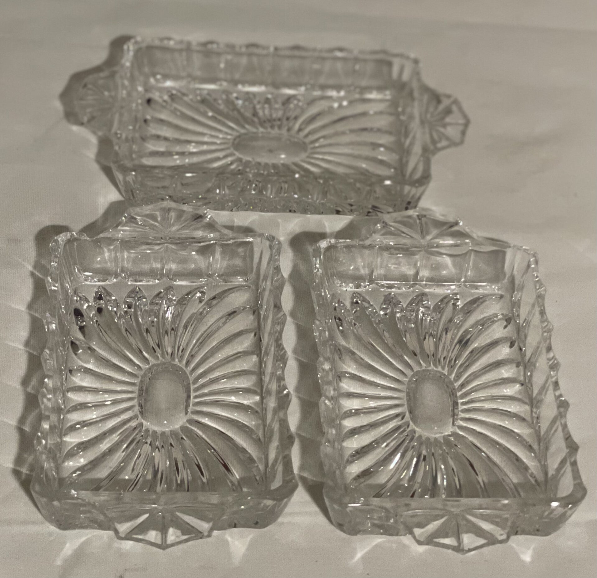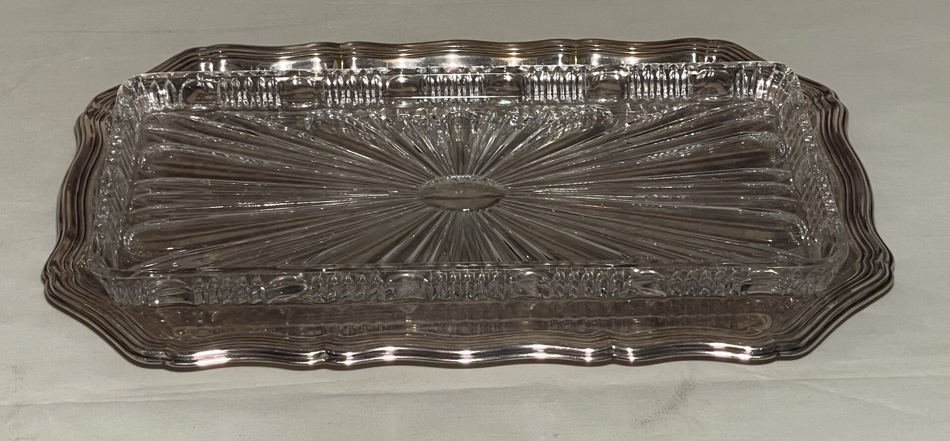 kristallen dienblad: 30,5cm x 15,5 x 2cm.