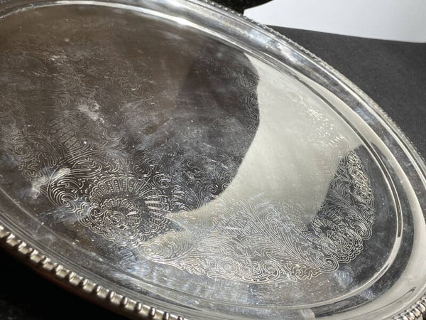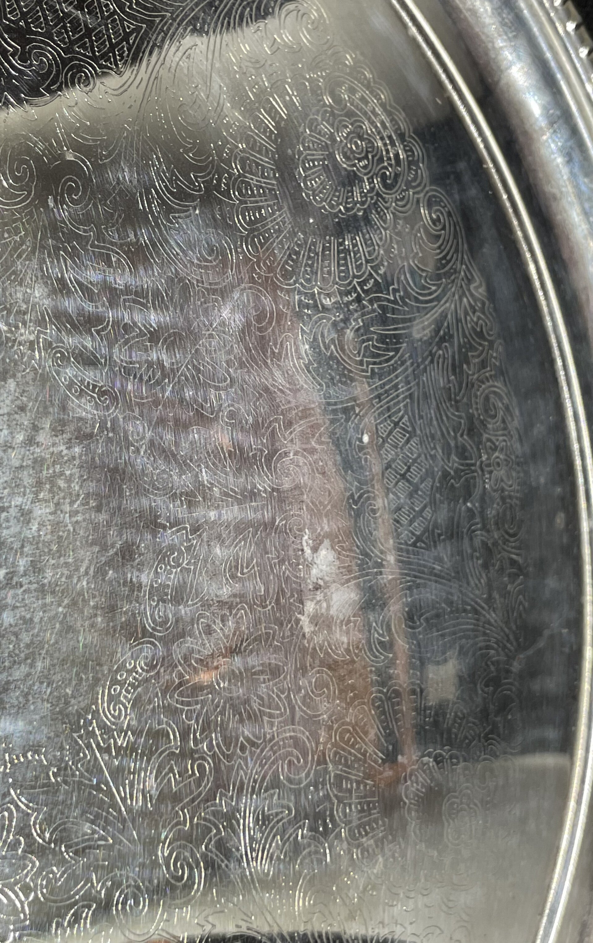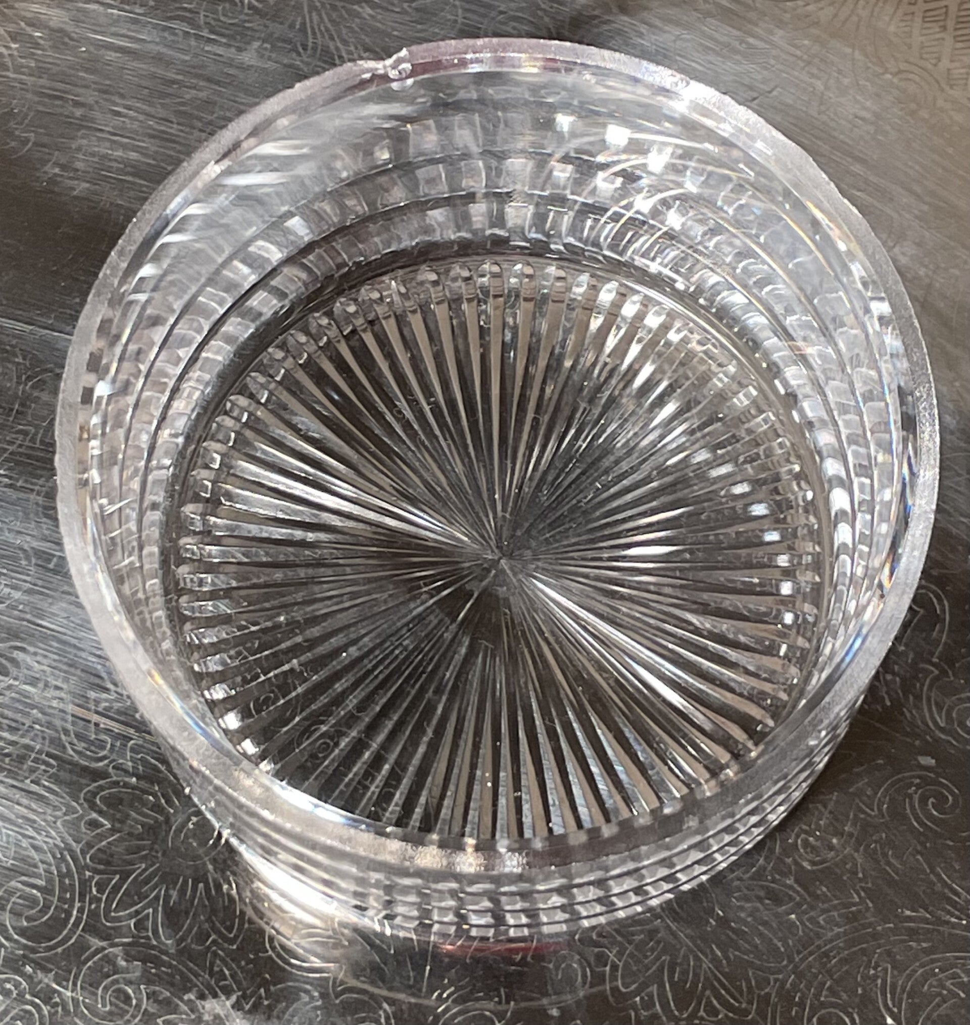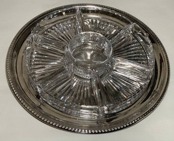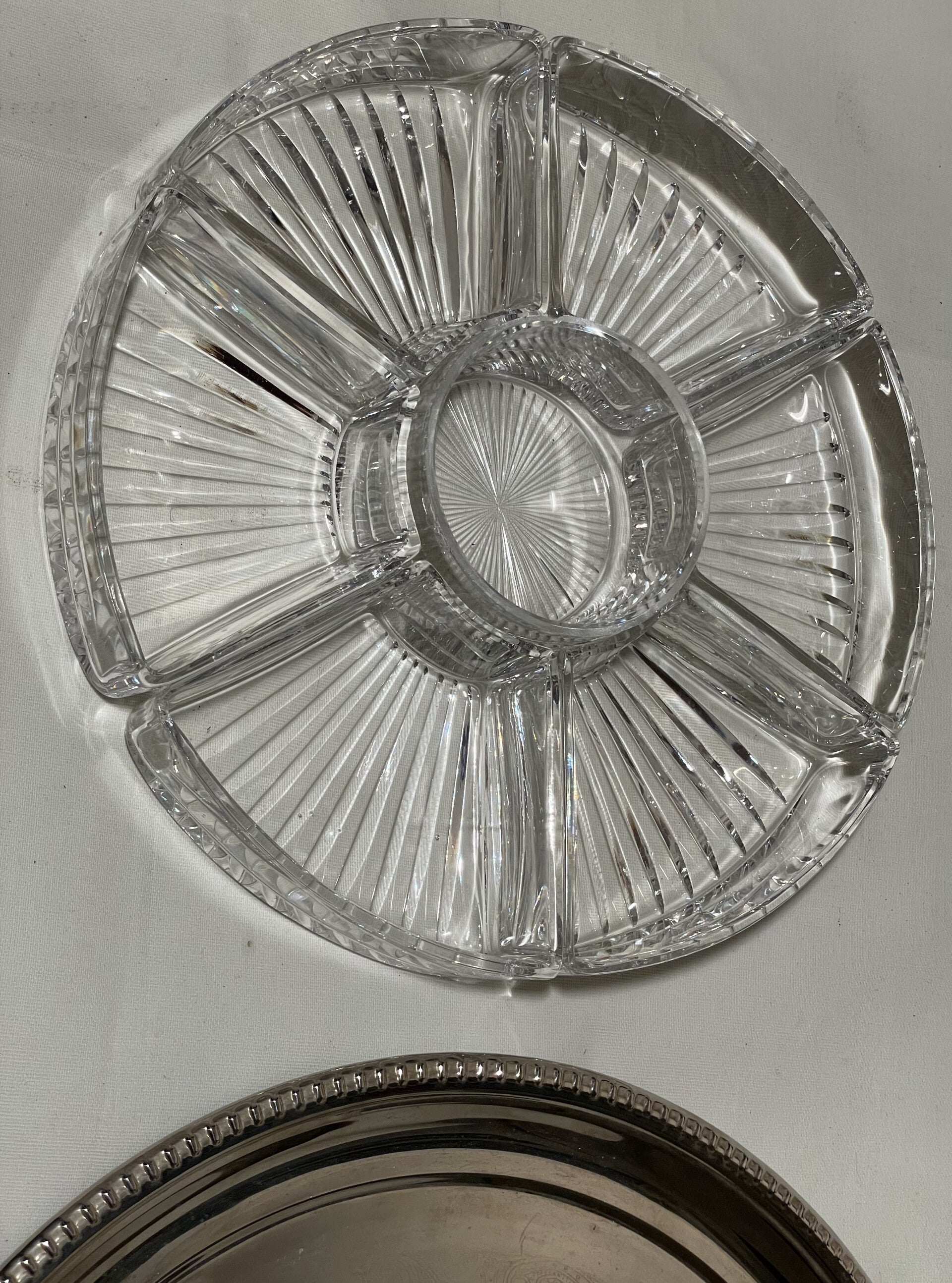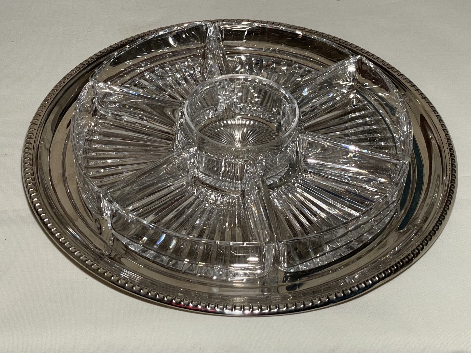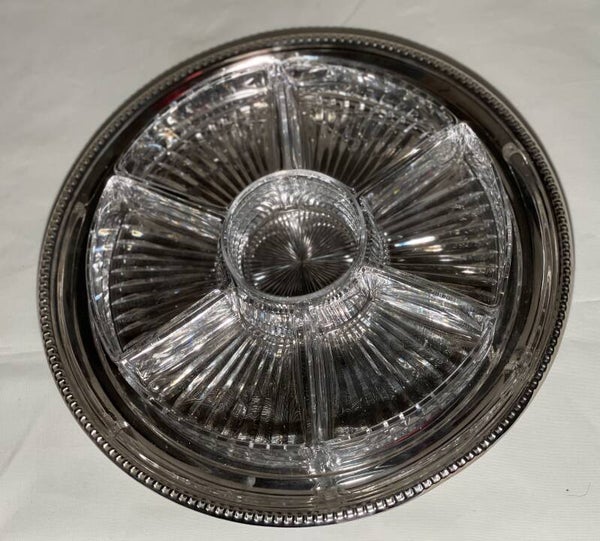 Verzilverde dienblad met 8 geperst glazen insert snack trays. Borreldienblad