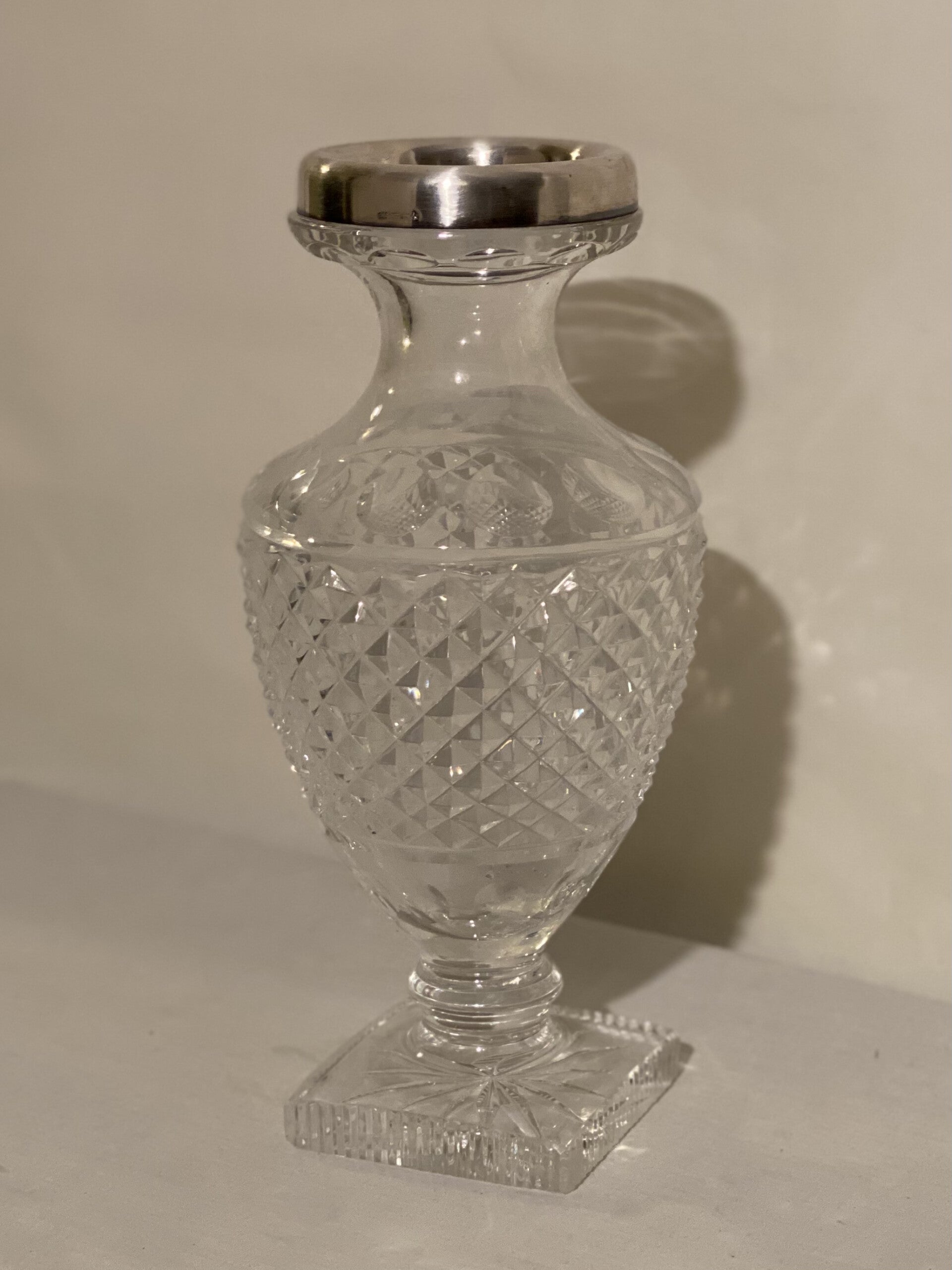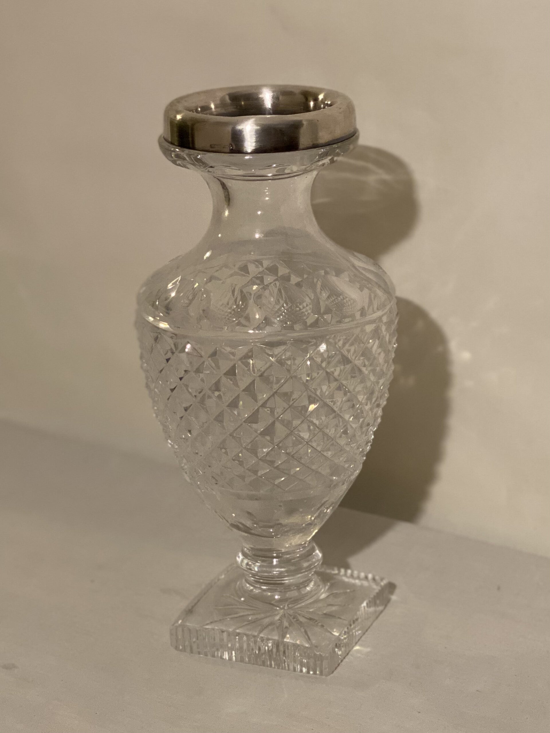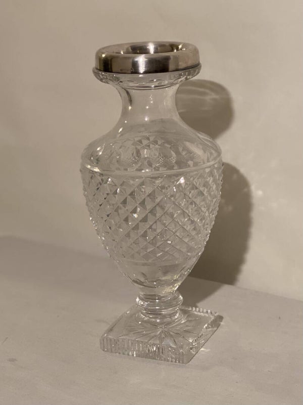 kristallen bloemsaus met zilveren rand