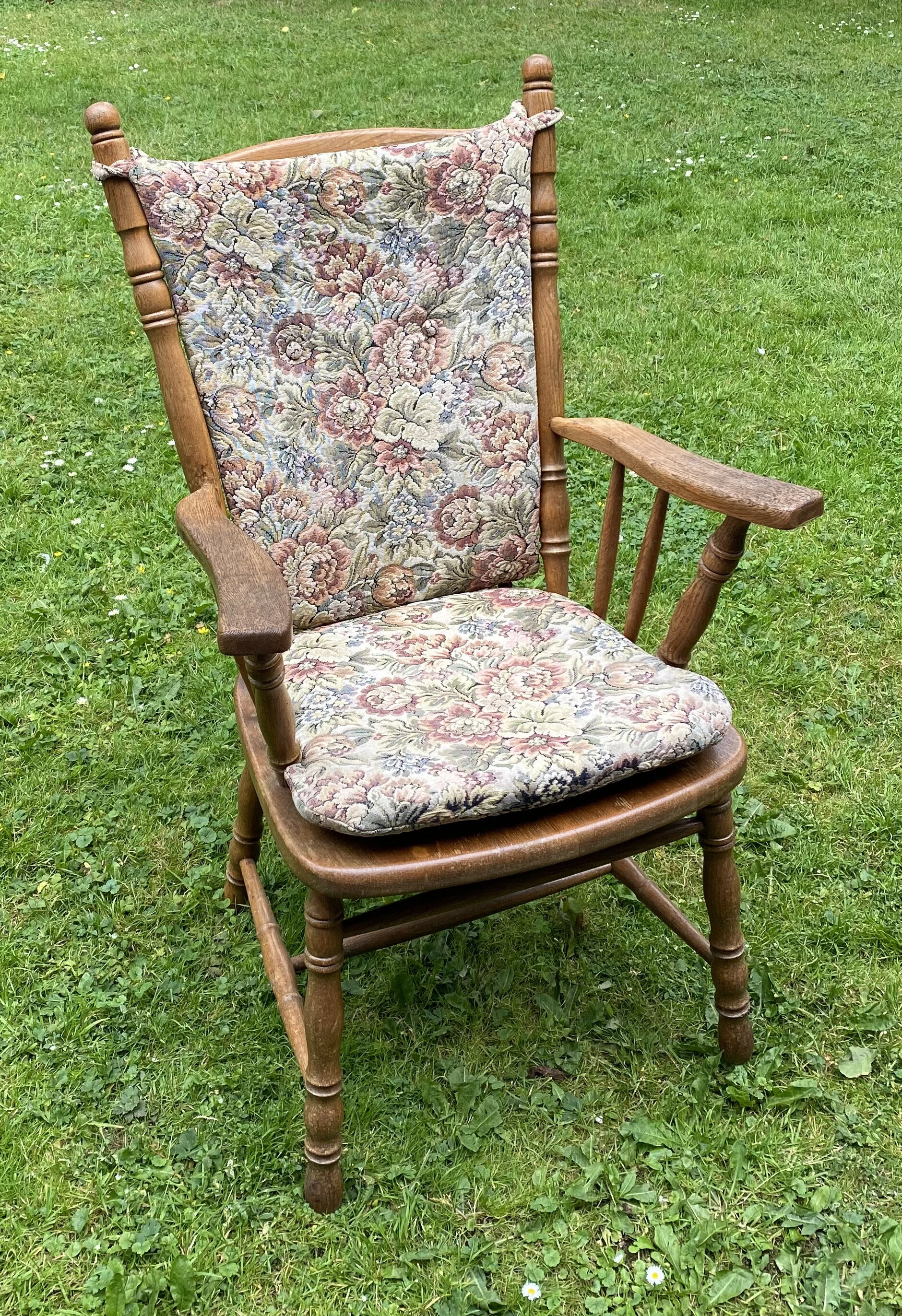 hoogte: 106cm , rugleuning: 63cm x 53cm, zitplaats: 47cm x 49cm.