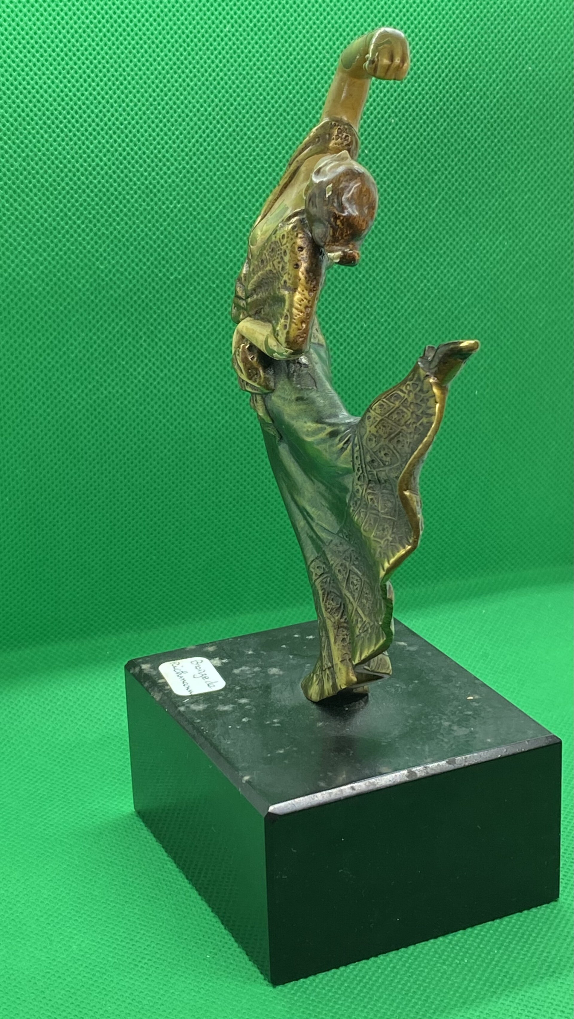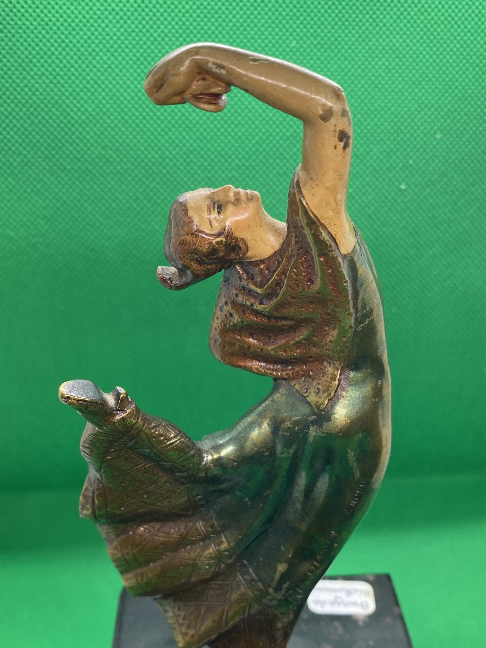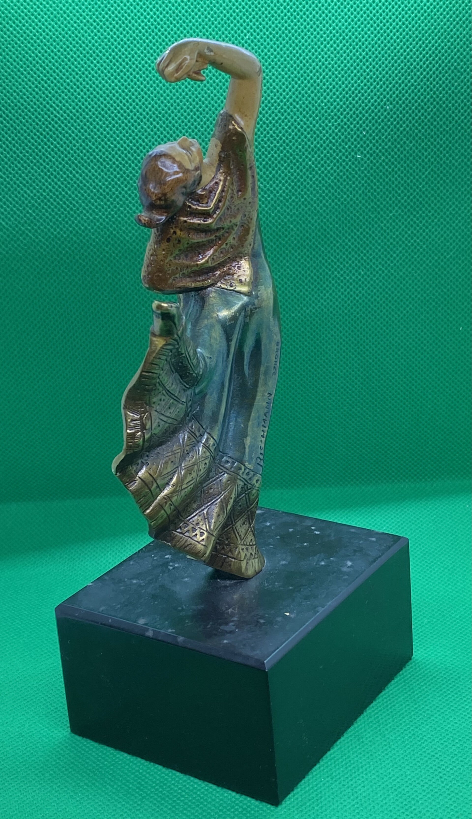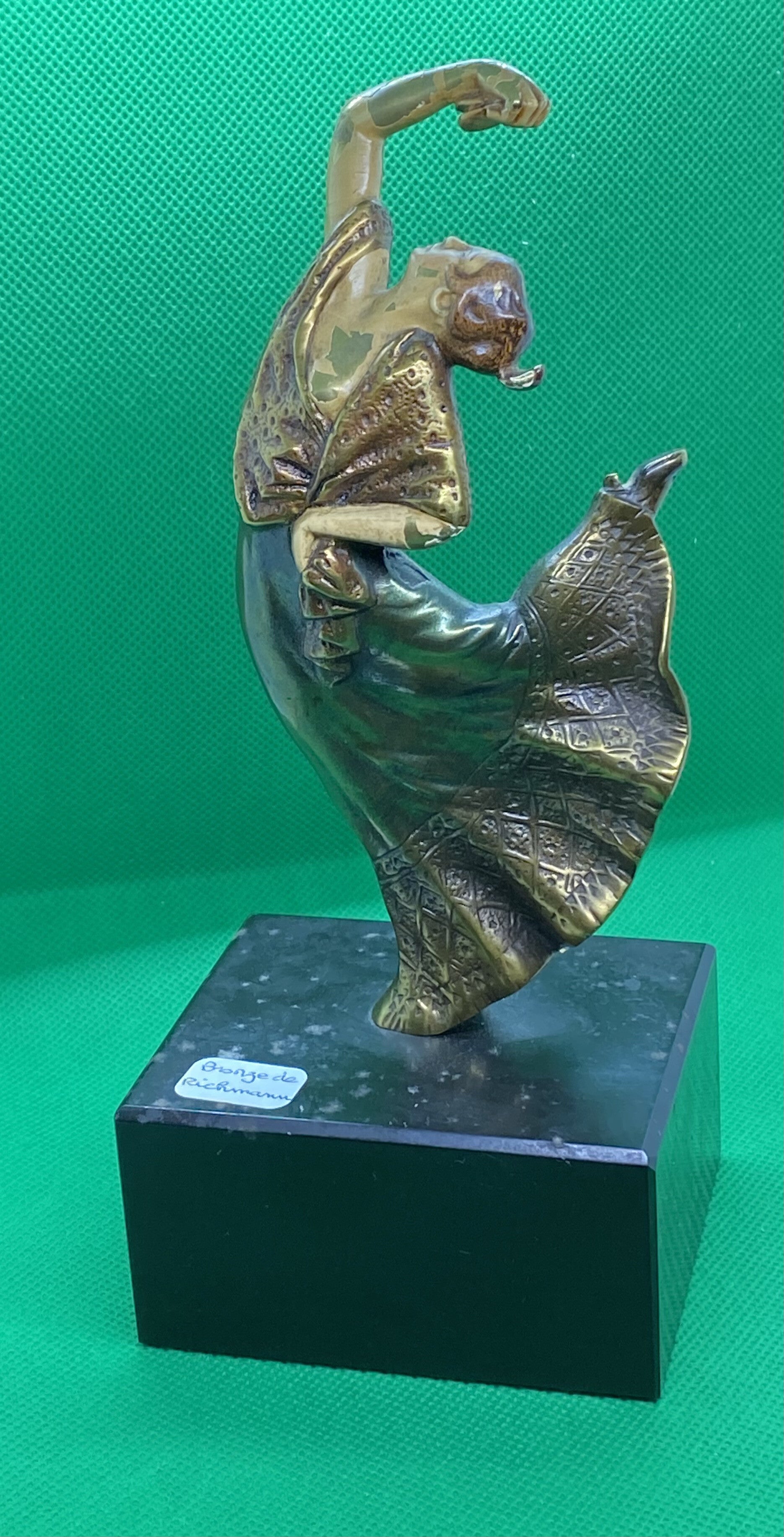 Franse bronzen Art Deco beeldje van dansende damen van Richman. Gegraveerd en op marmeren voet.