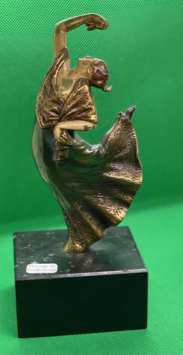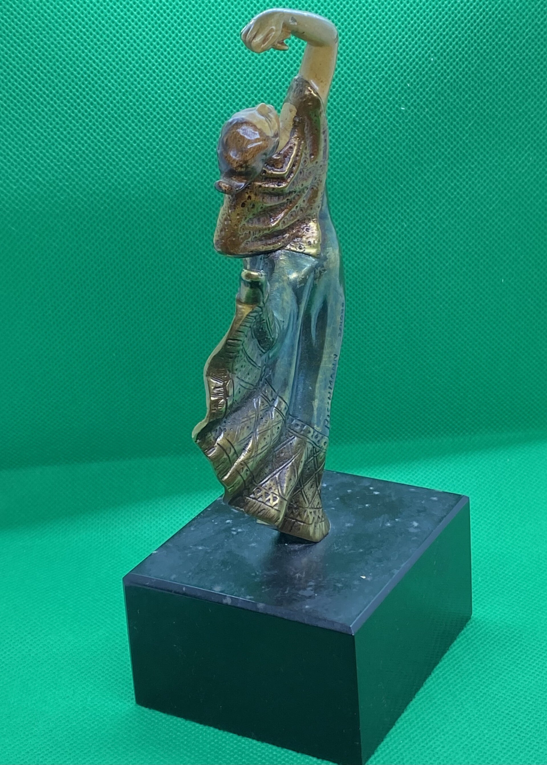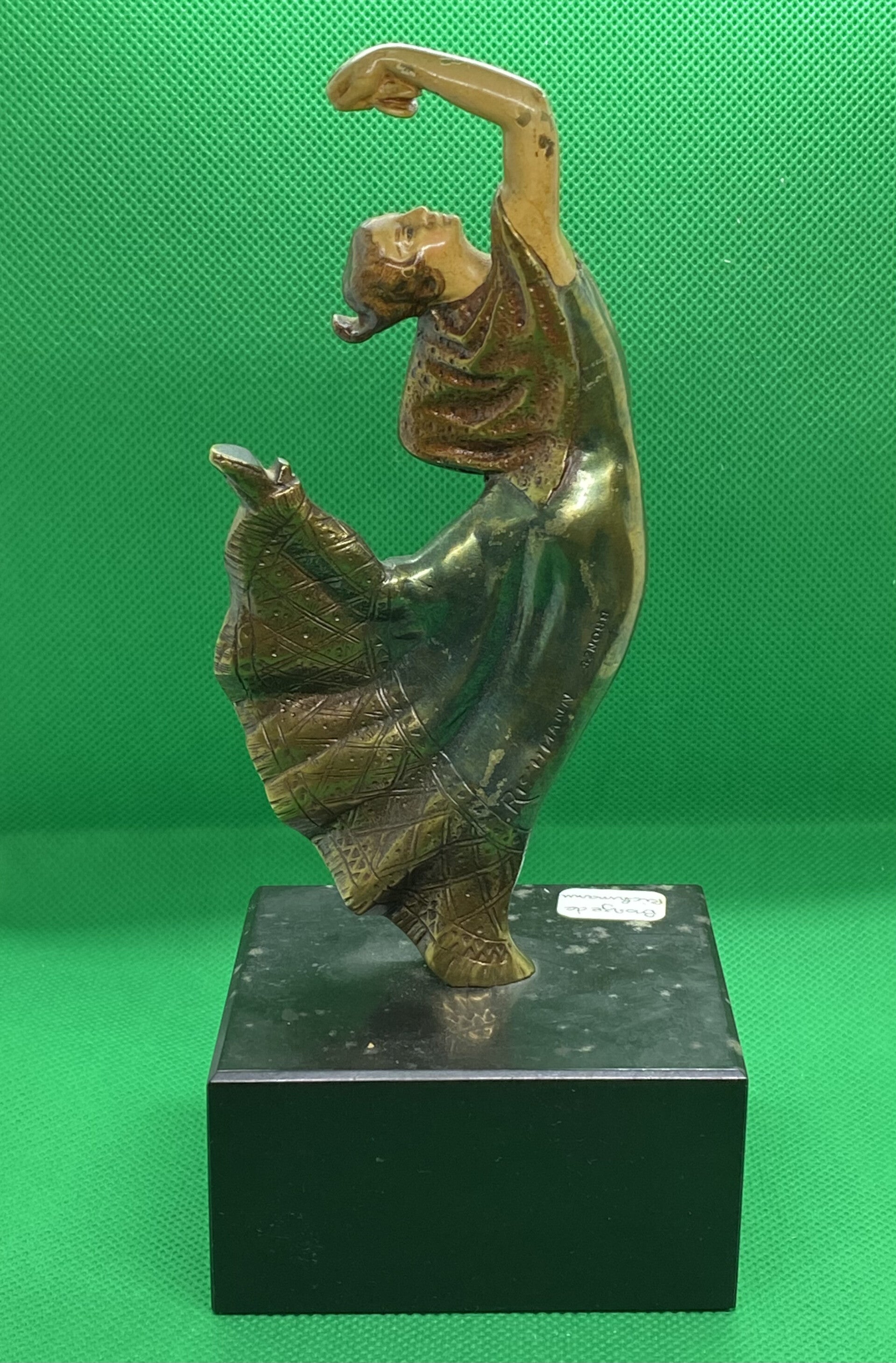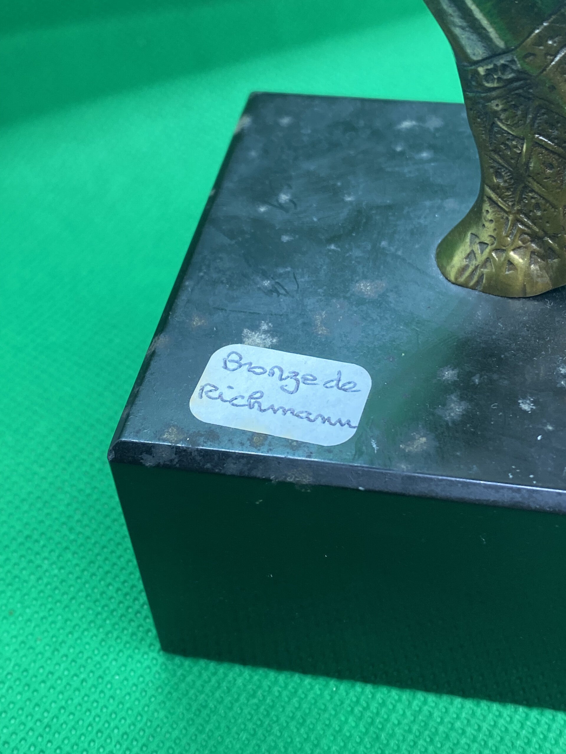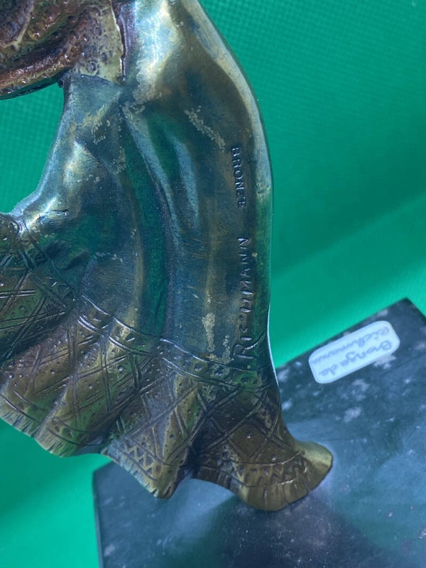 Franse bronzen Art Deco beeldje van dansende damen van Richman. Gegraveerd en op marmeren voet.
