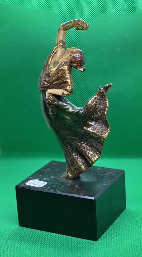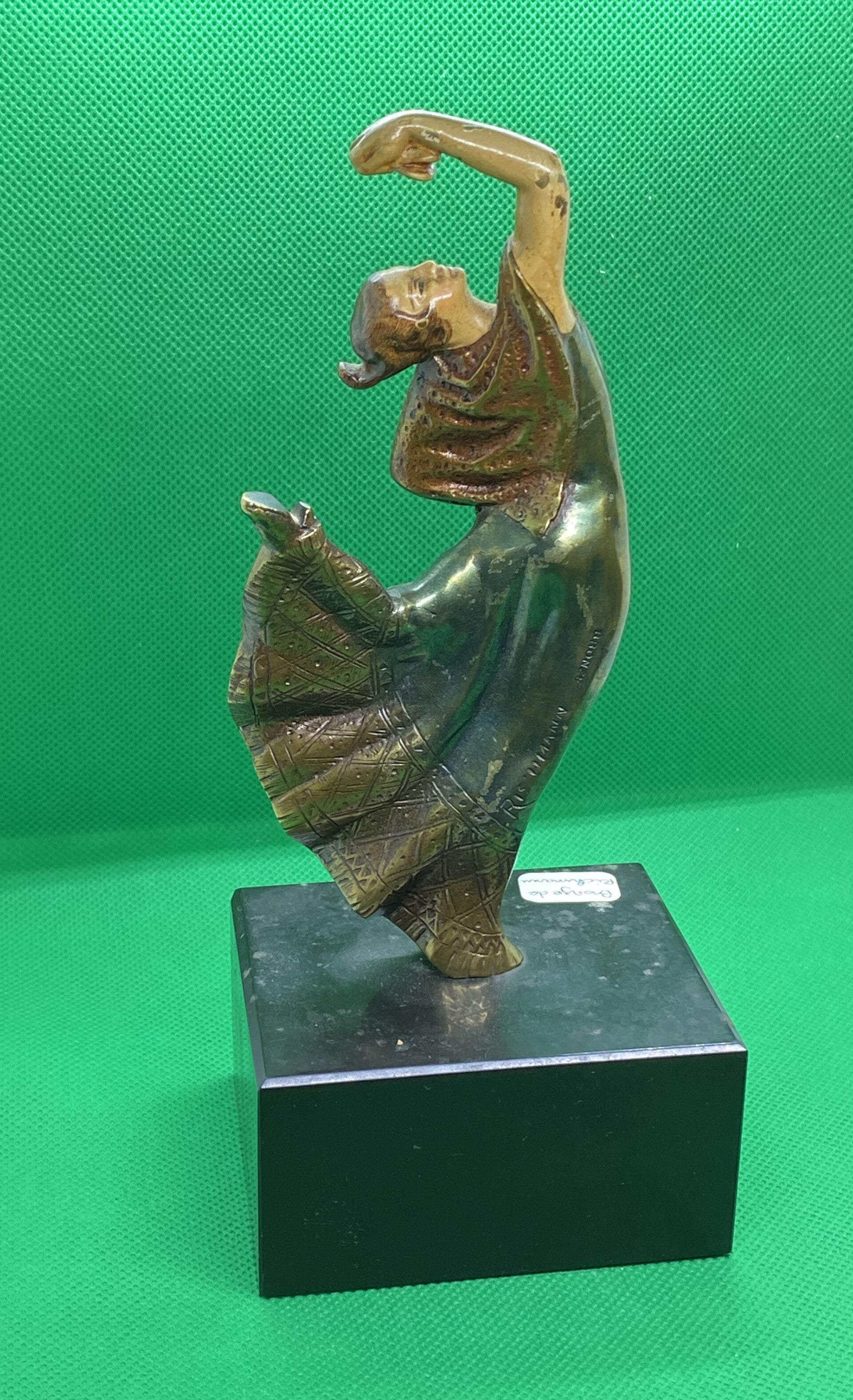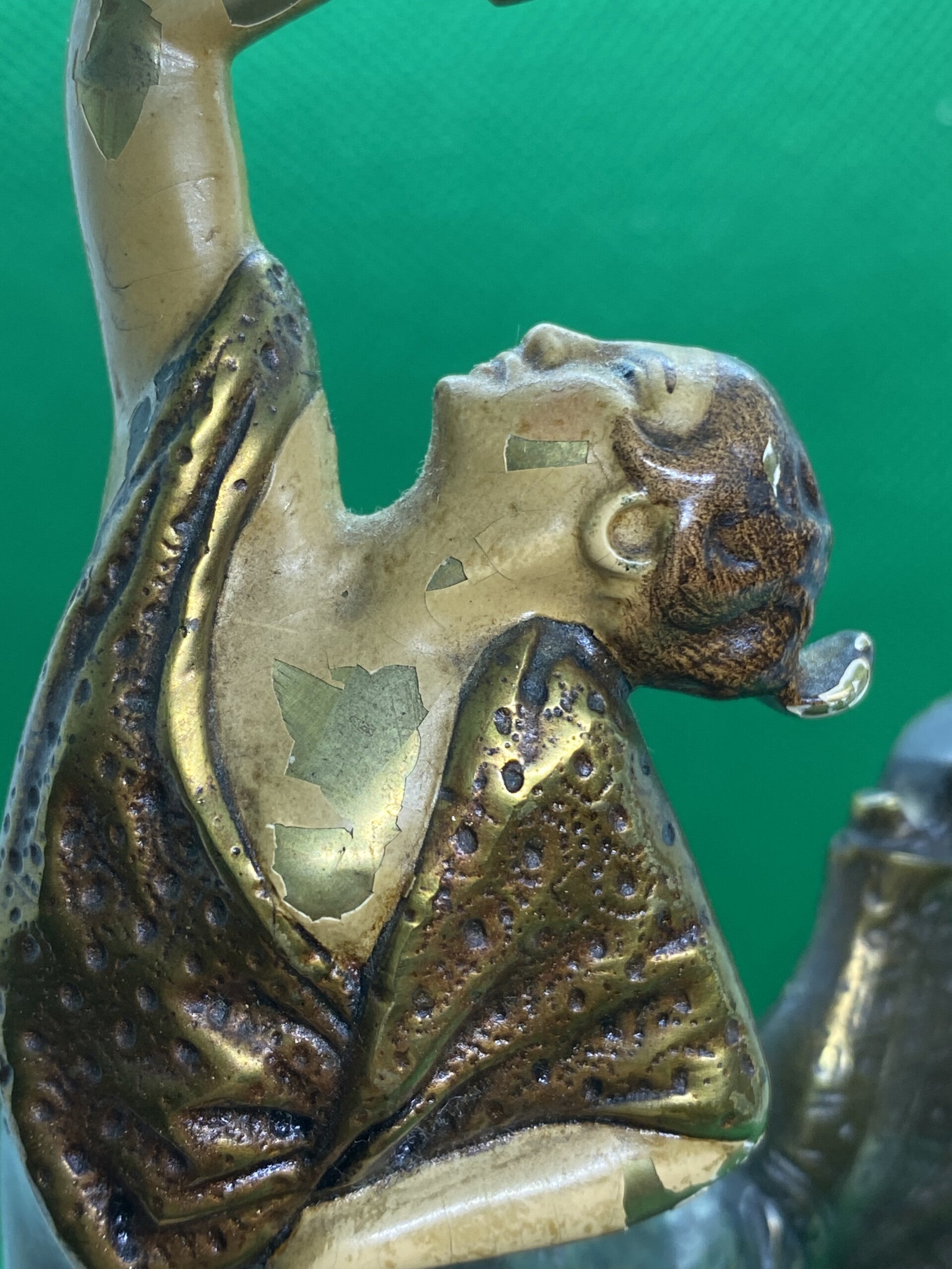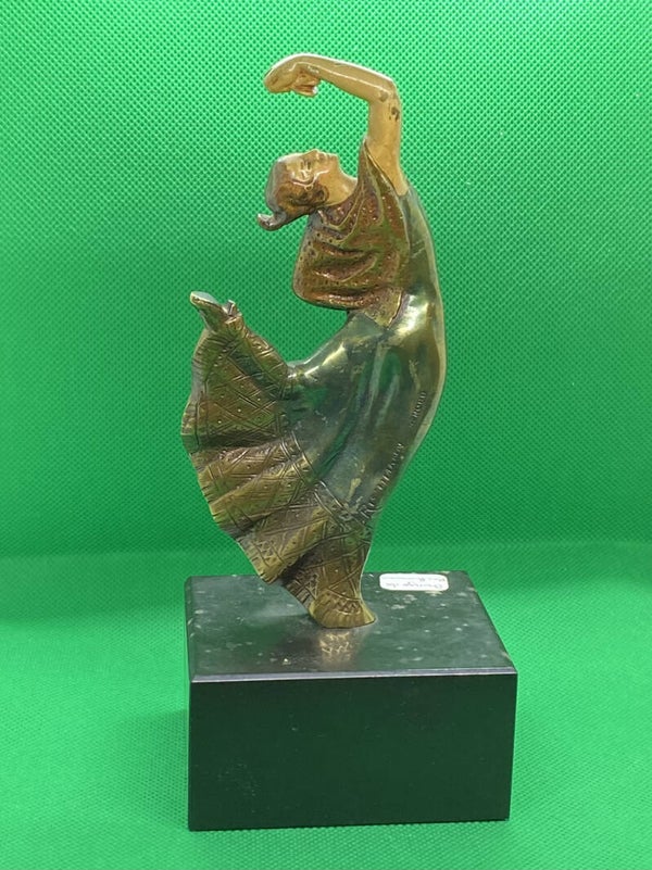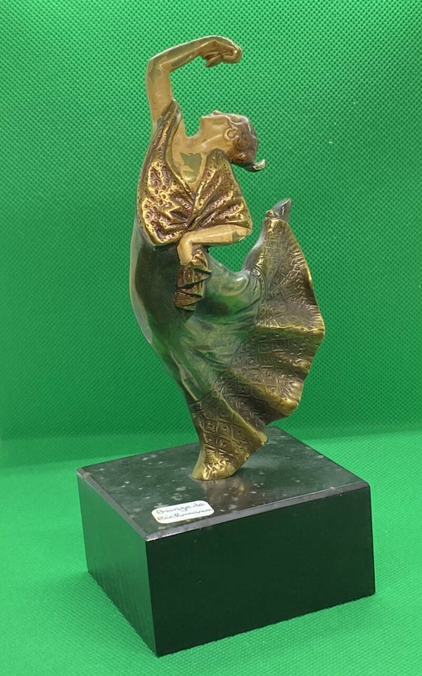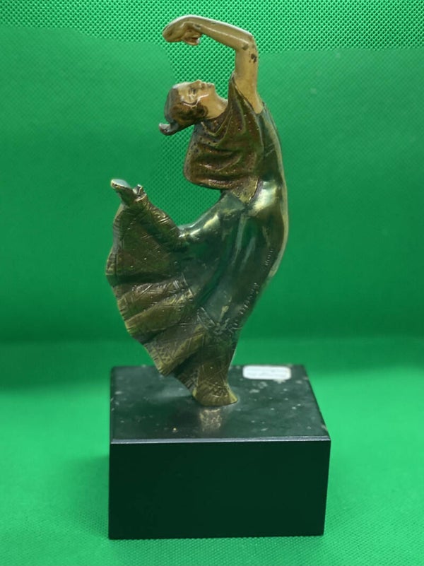 Franse bronzen Art Deco beeldje van dansende damen van Richman. Gegraveerd en op marmeren voet.