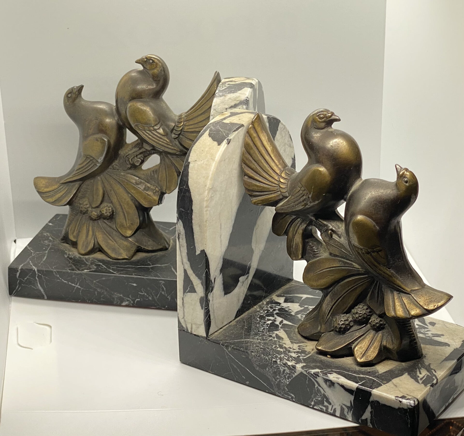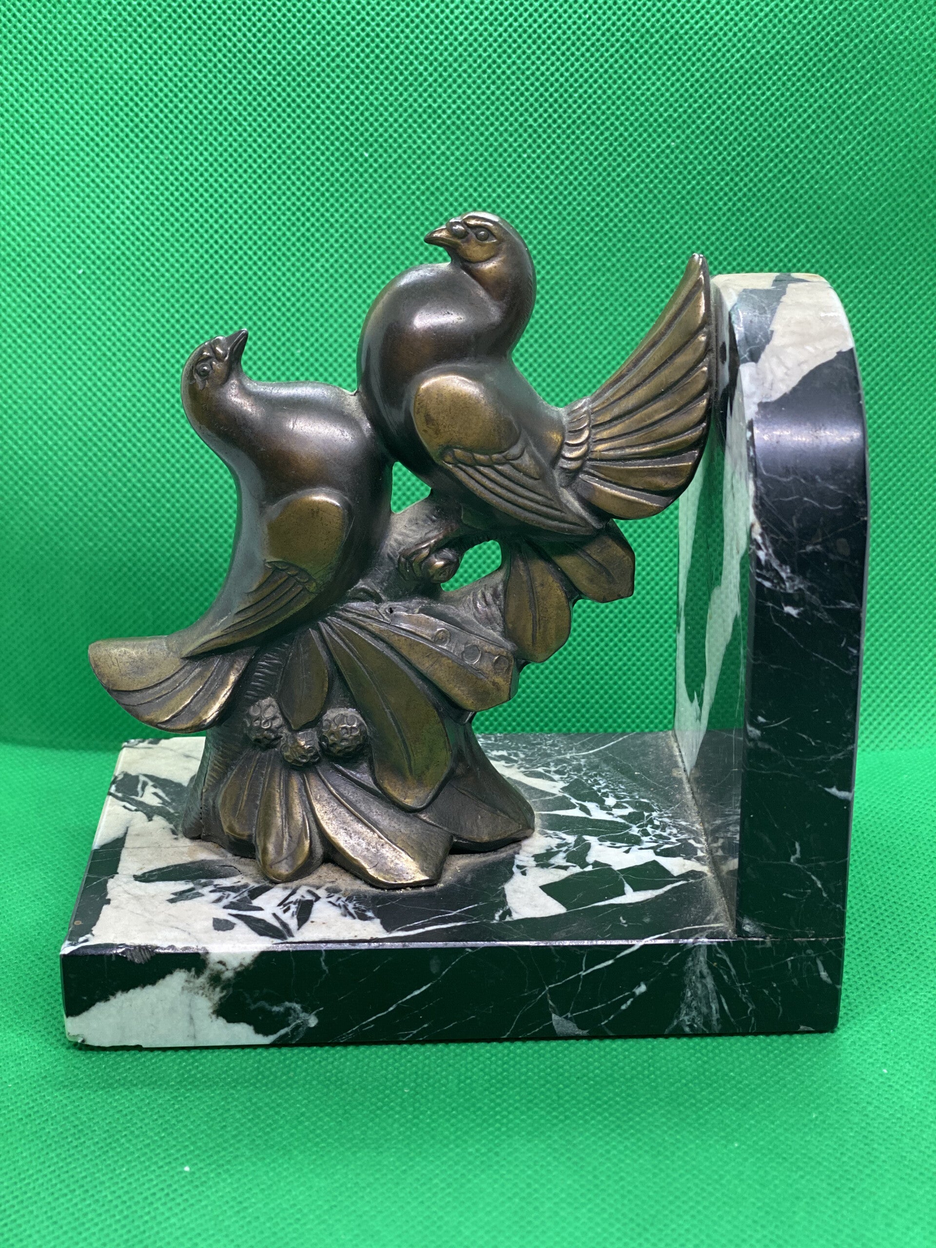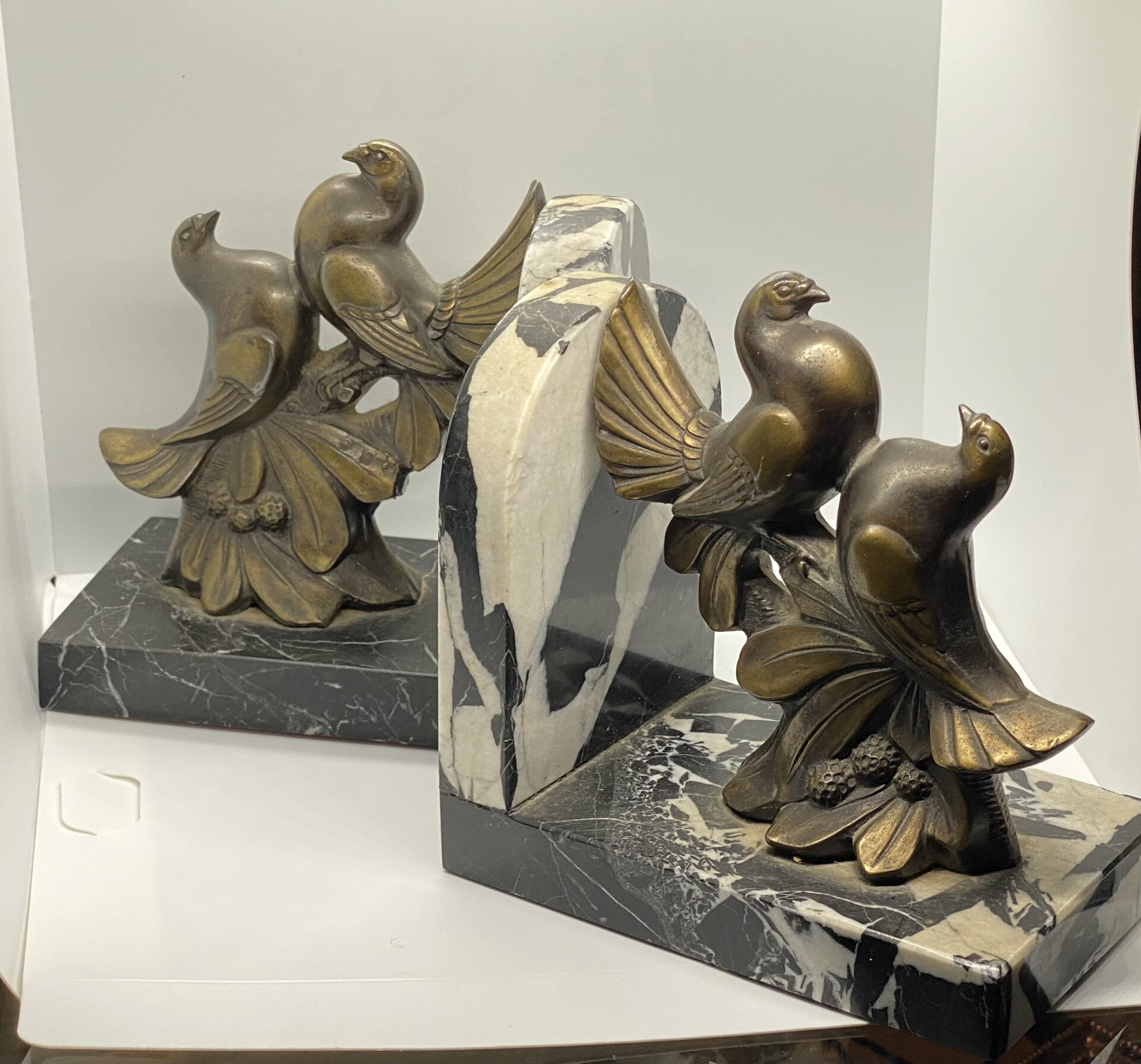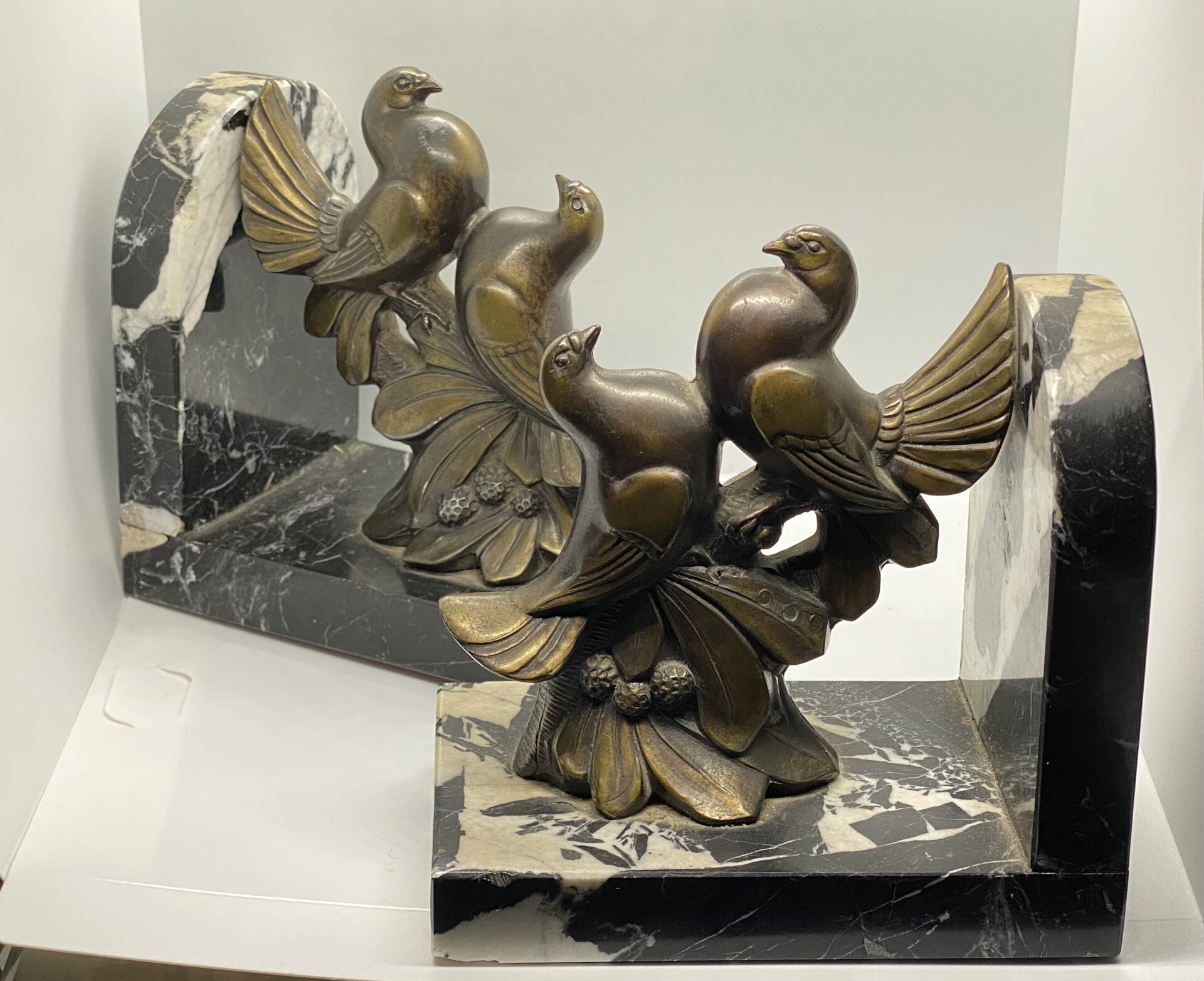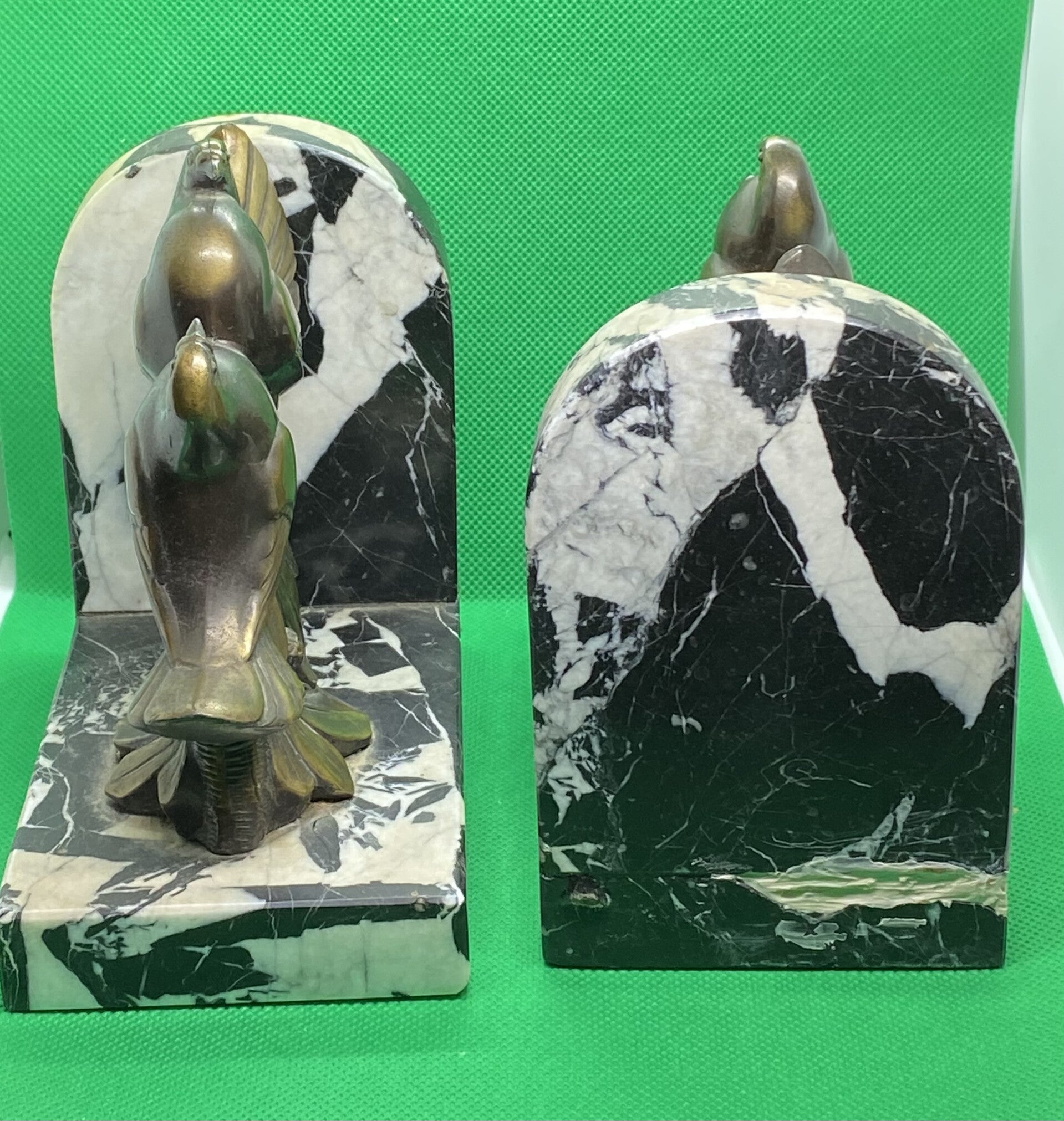 Art Deco Fransen bronzen / marmeren boeksteunen.